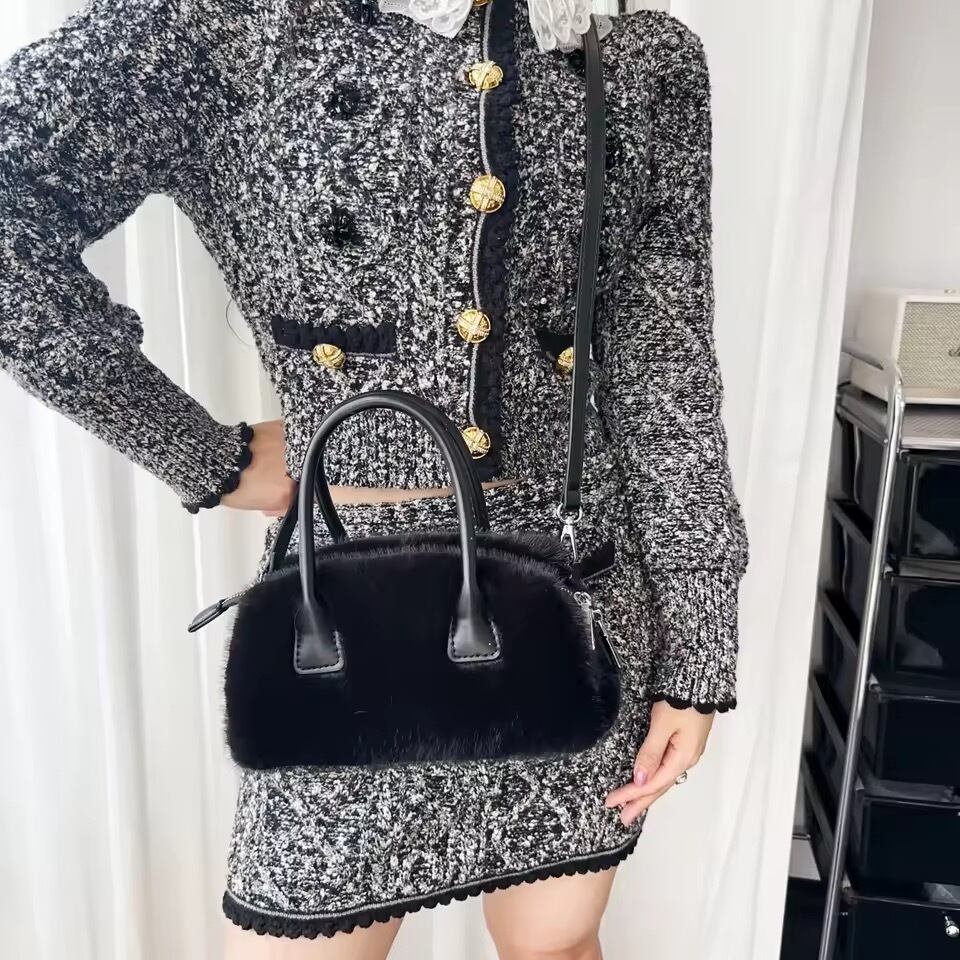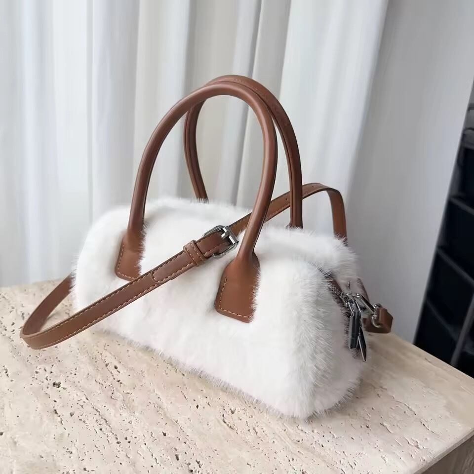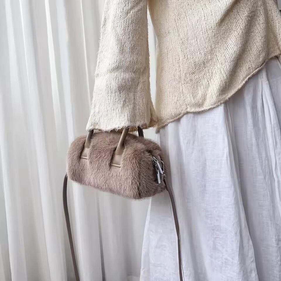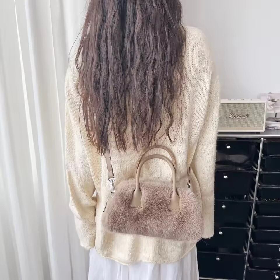 ラウンド型にファーが可愛いバッグは、ショルダーにもなる2wayバッグ。