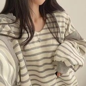 ボーダーに、フードとお袖の配色がアクセントのパーカー。