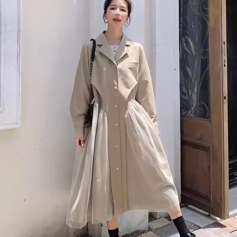 サイドからバックスタイルにかけて、チュールドッキングデザインになったアウター。