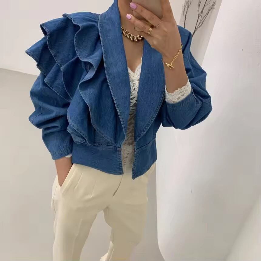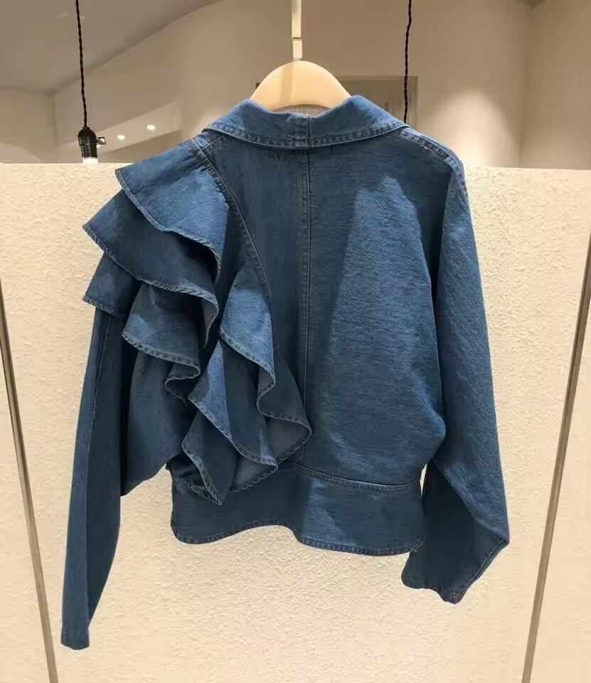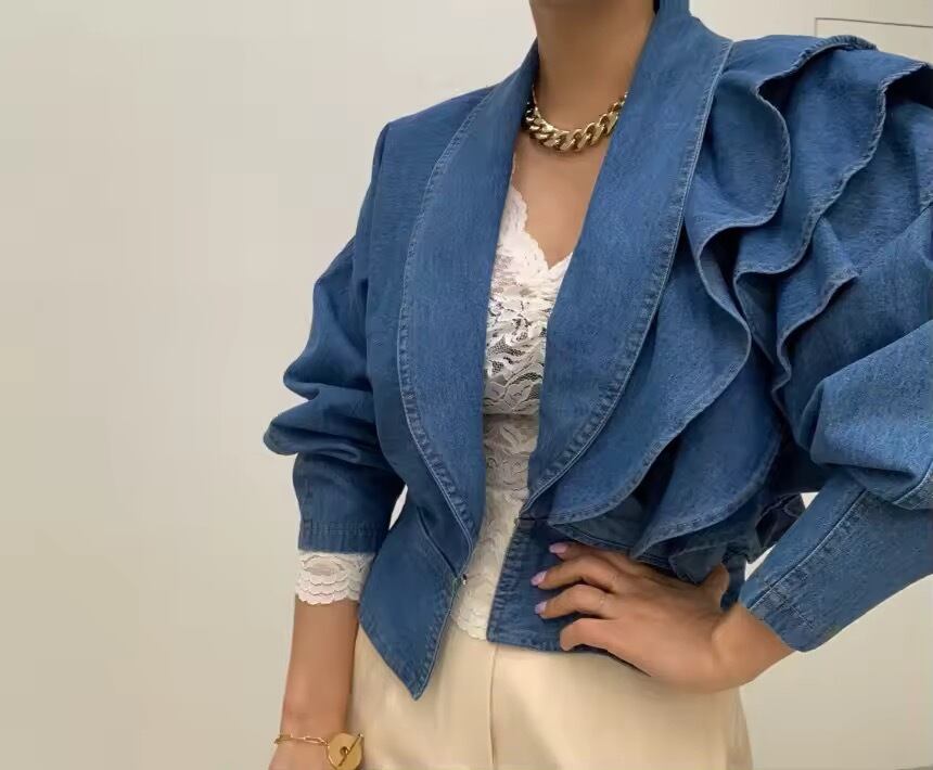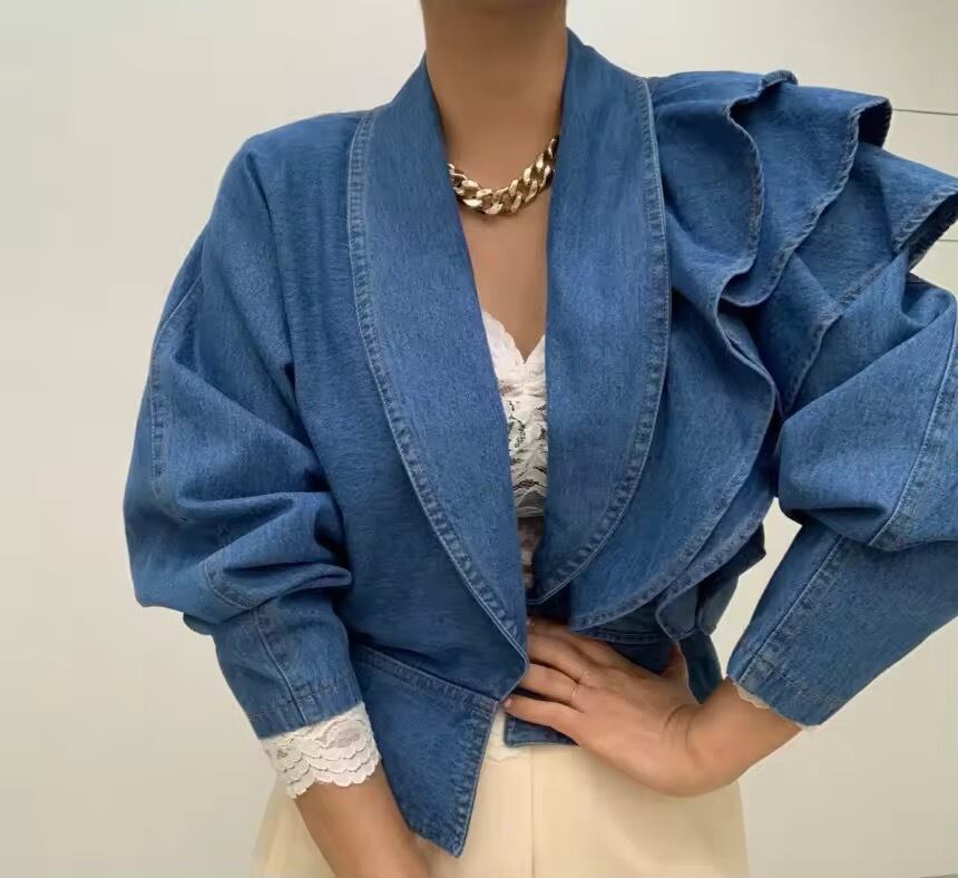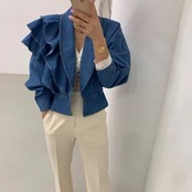 アシンメトリーなフリルな華やかなデニムジャケット。