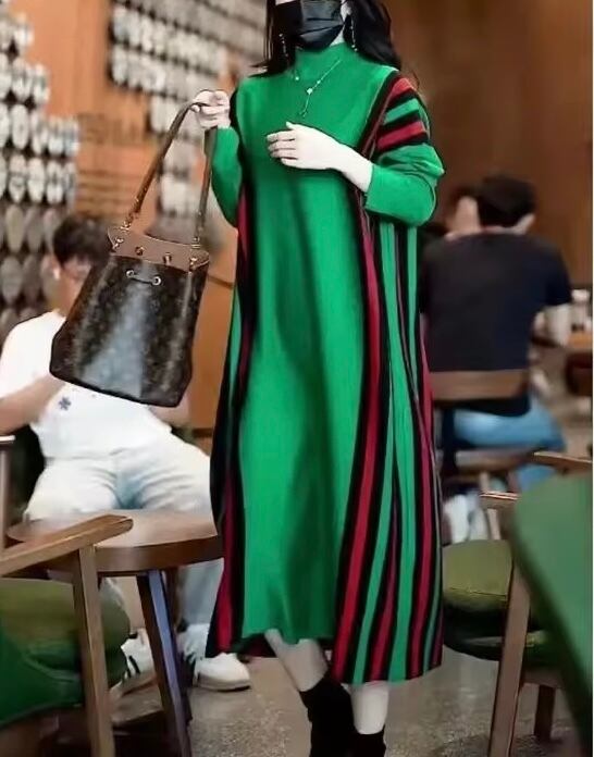 1枚でインパクトあるスタイリングが完成するニットワンピースです。