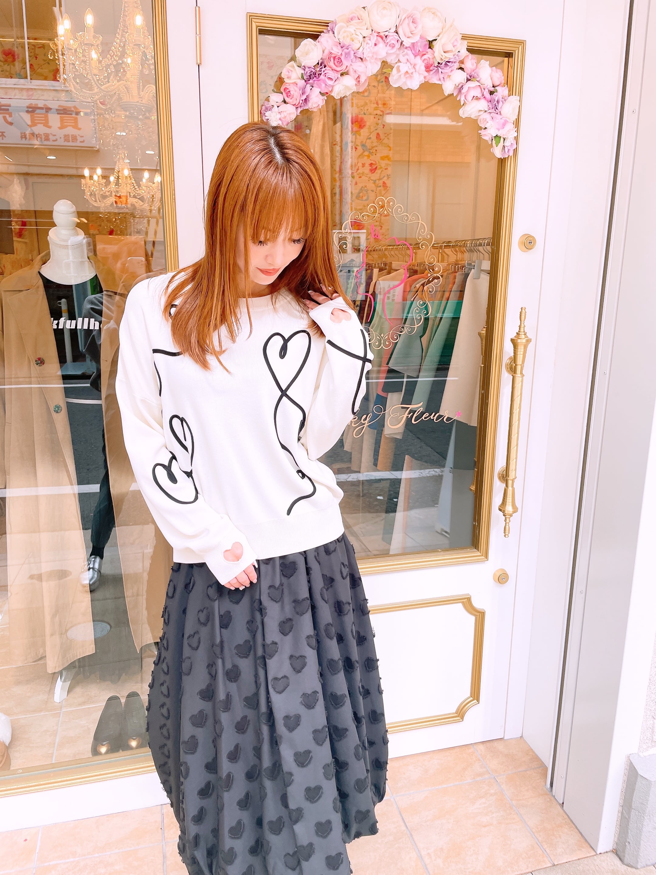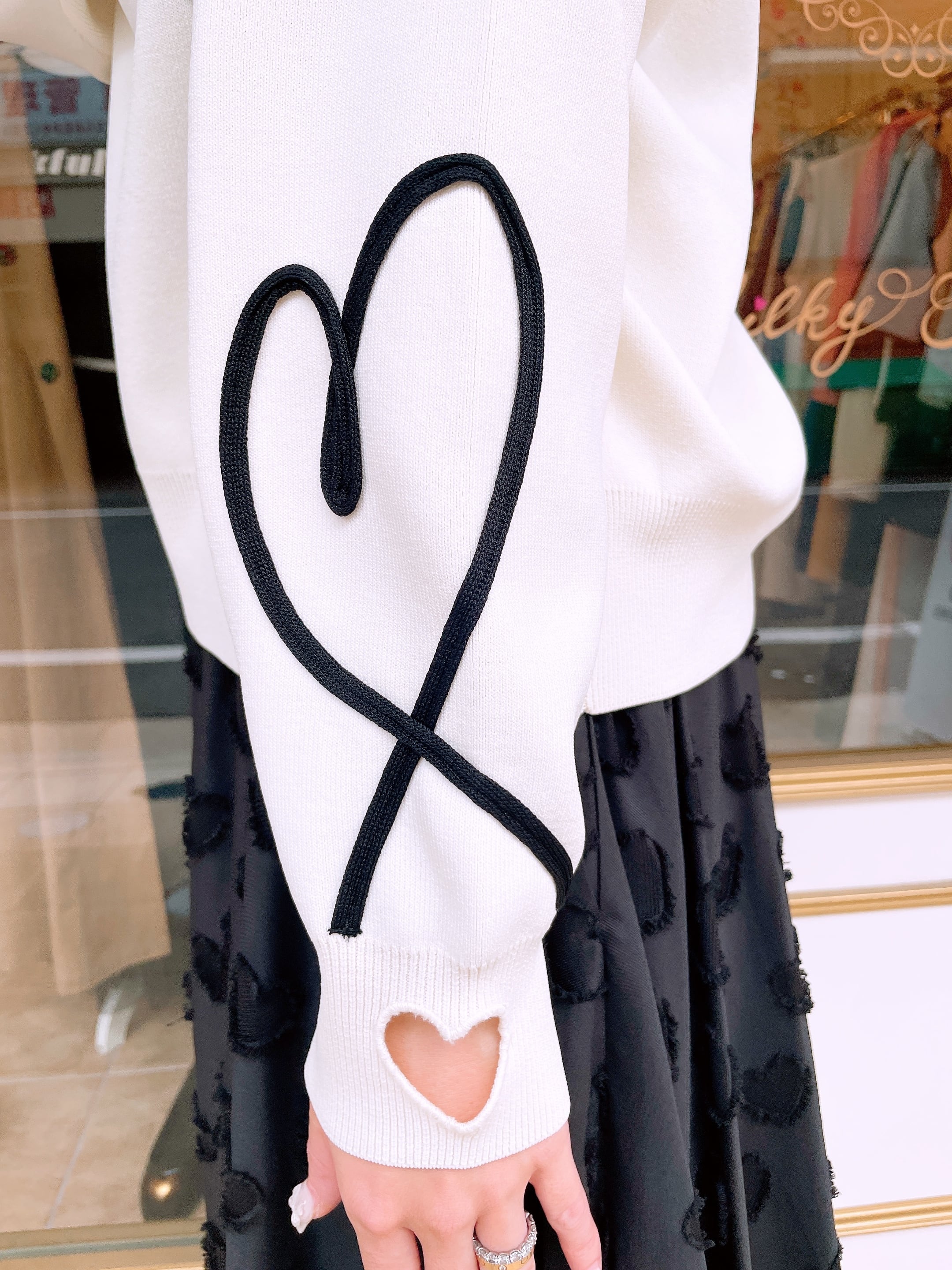 立体的なコード刺繍で描かれたハートモチーフが目を引くニットです。