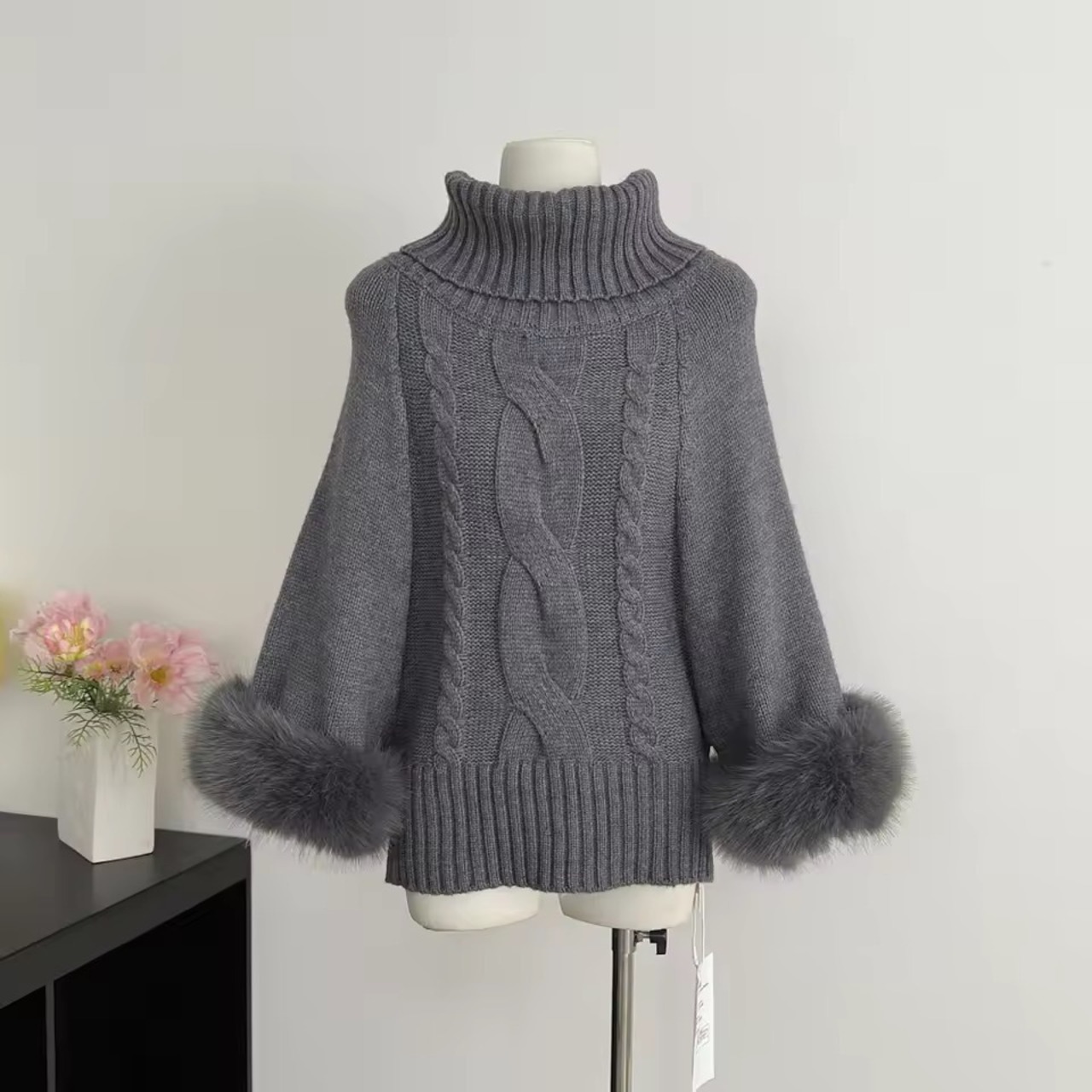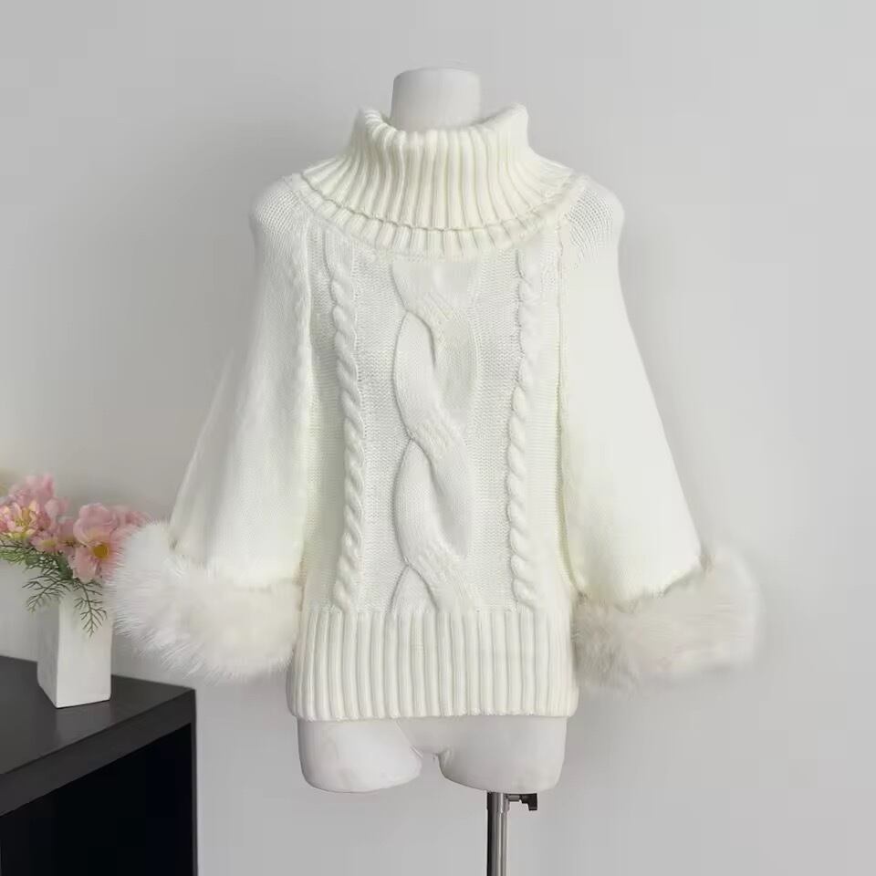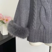 お取り外し可能なファーがお袖にデザインされたタートルニット。