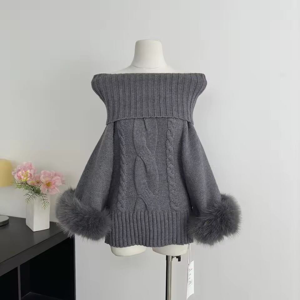 オフショルにしても着れるニットは、ポンチョ風なデザインも可愛いニットです。