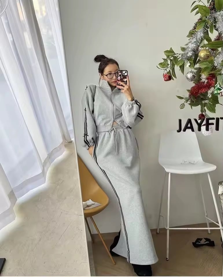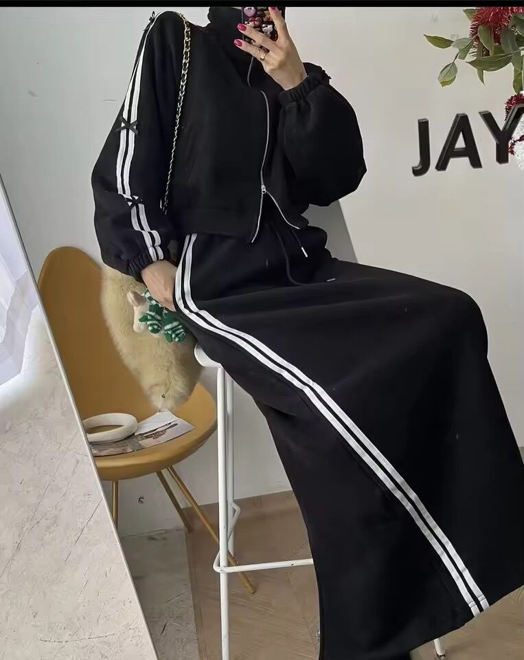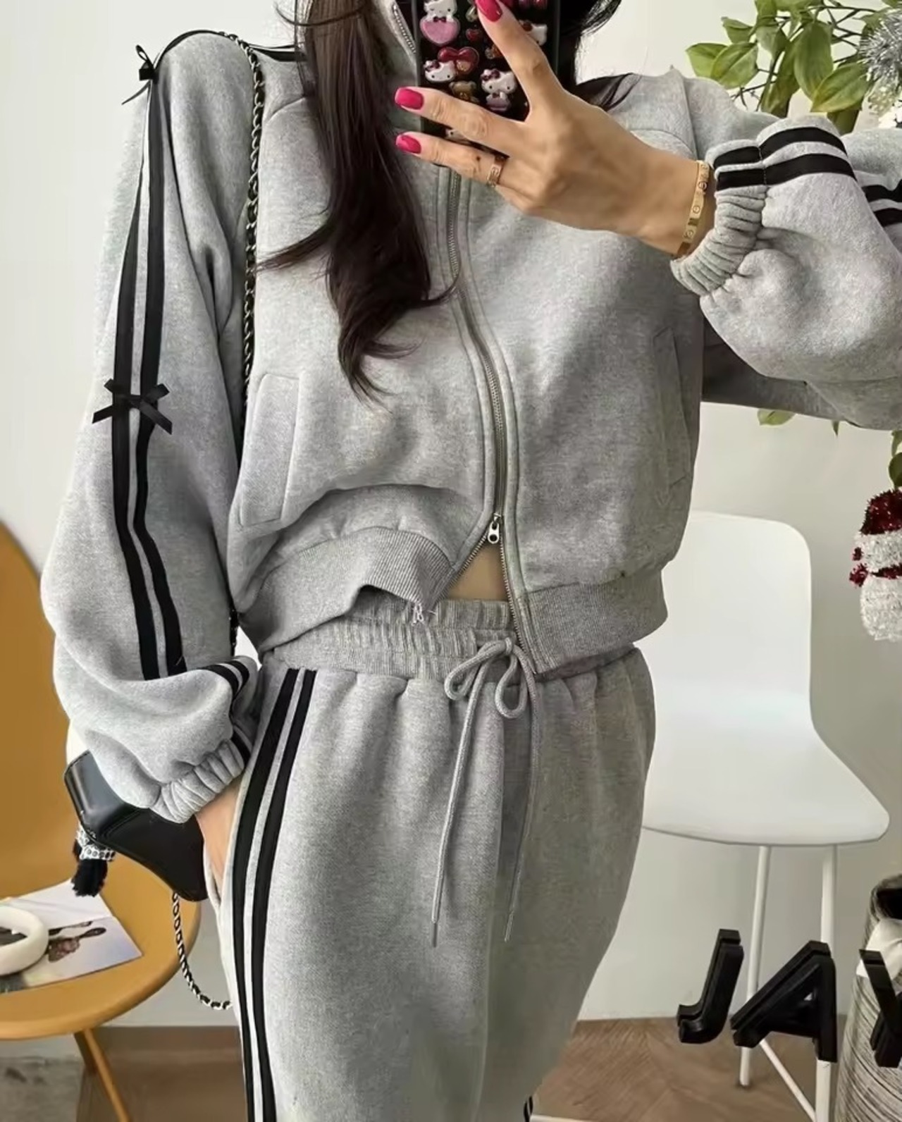 サイドラインにリボンがアクセントのスウェットセットアップ。