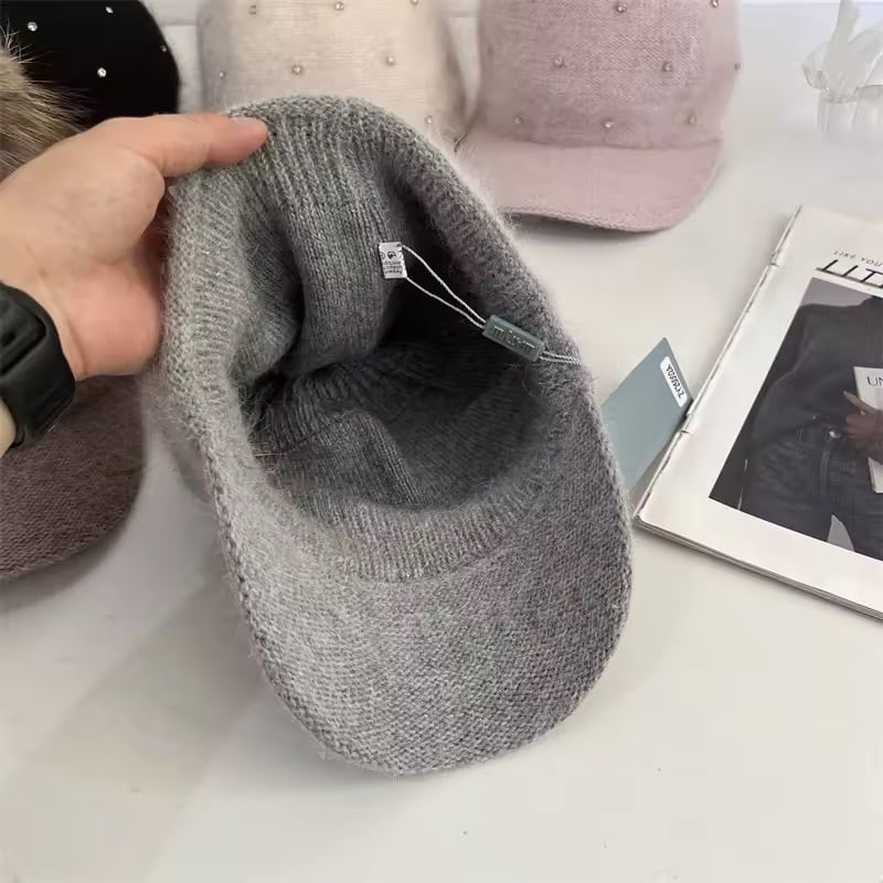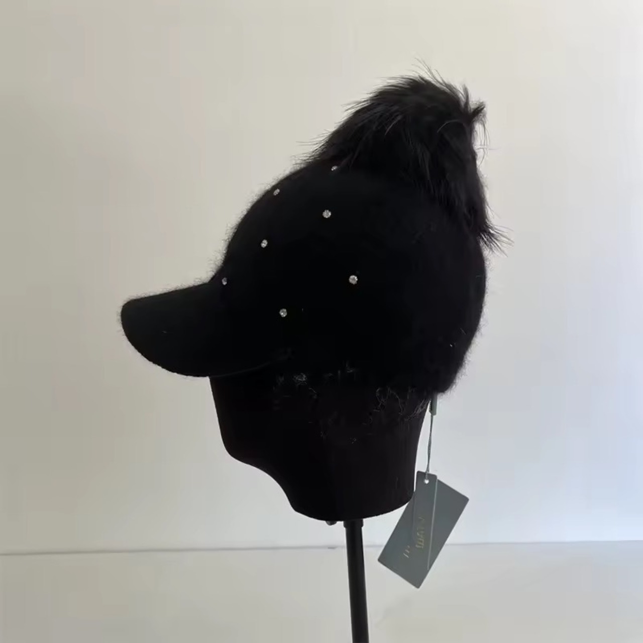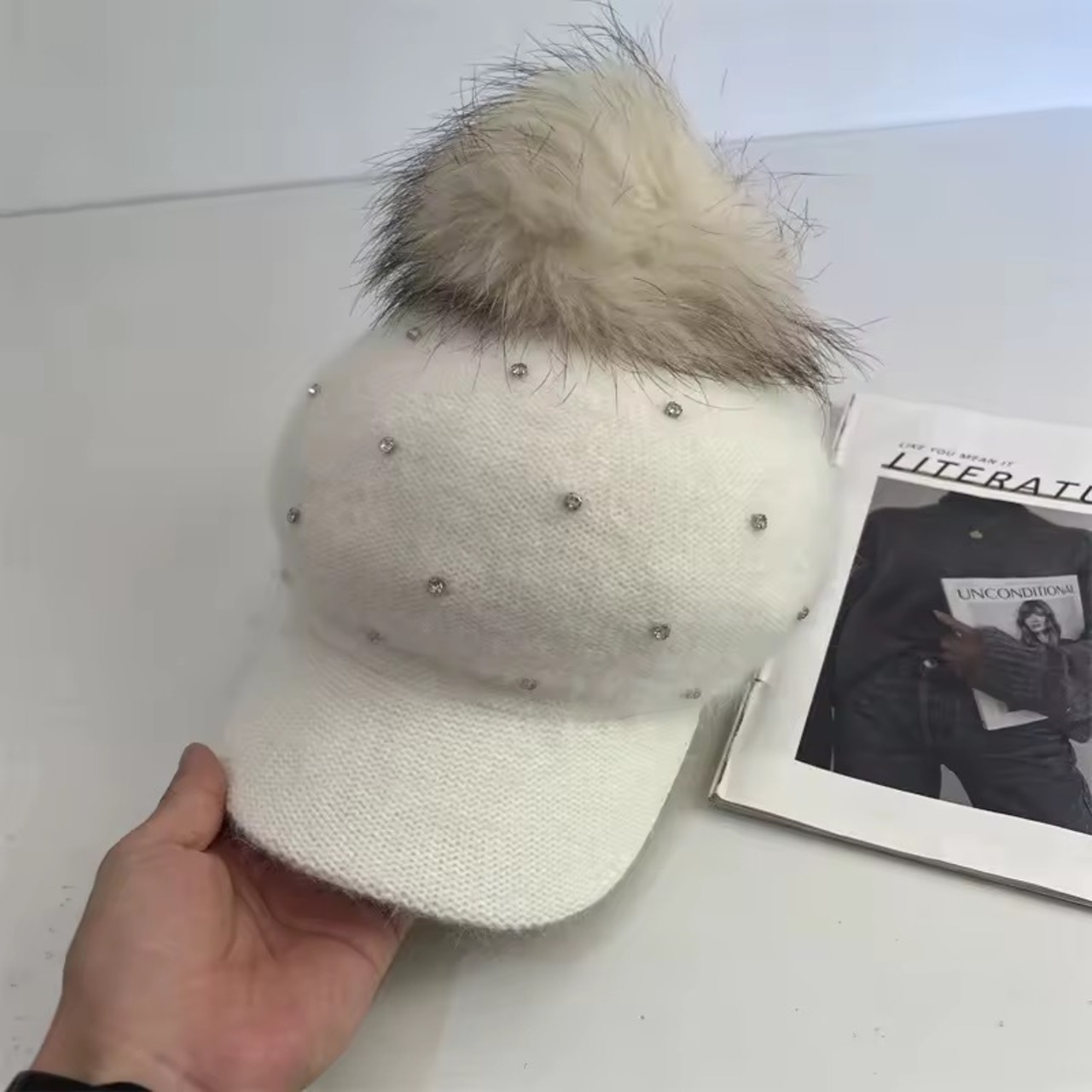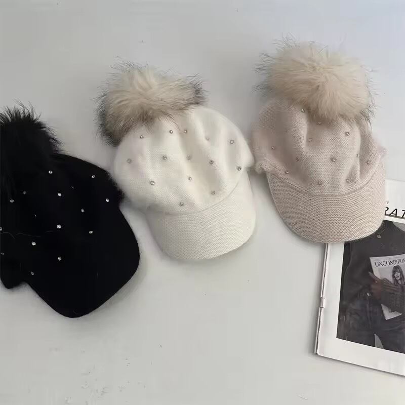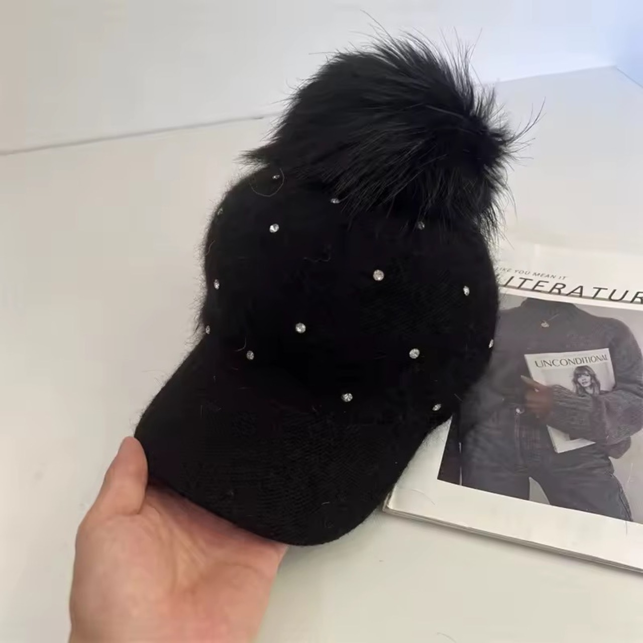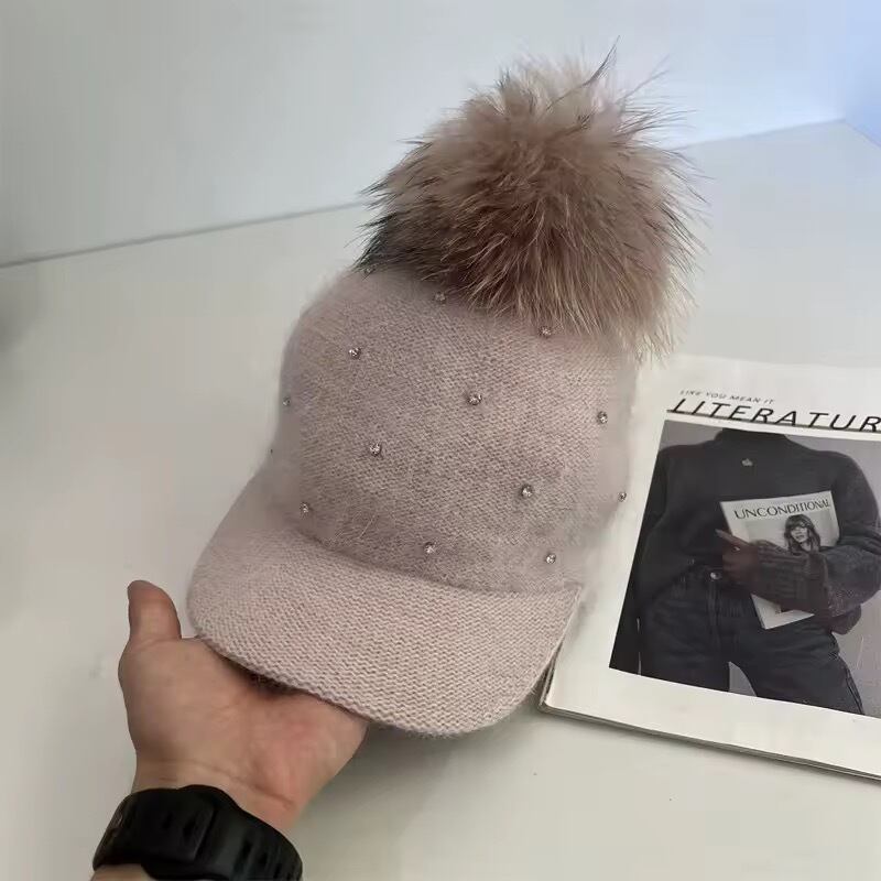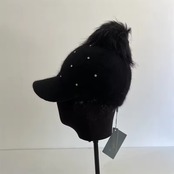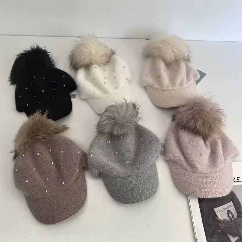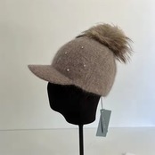 ビジューファーポンポンニットキャップ(一ヶ月程でお届け)