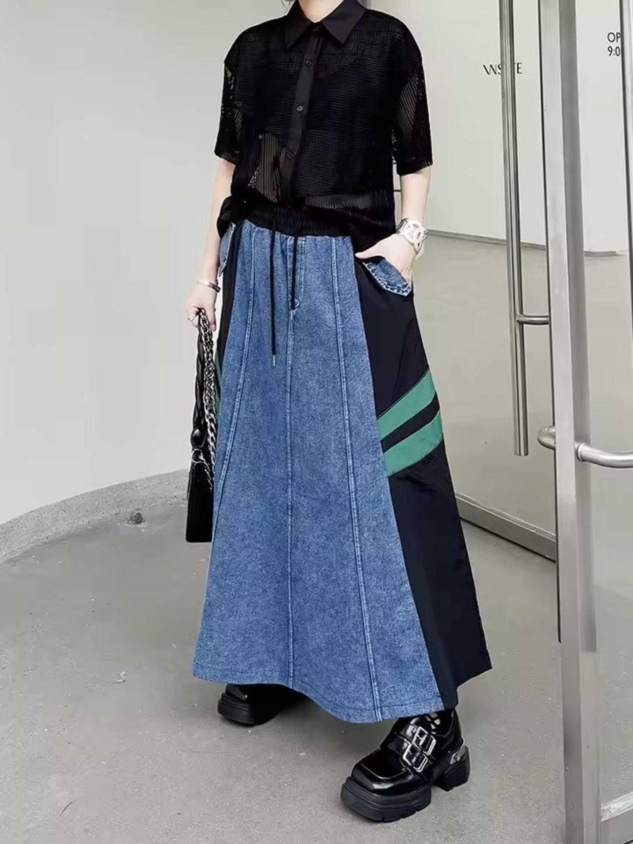 サイドラインドッキングデニムスカート(一ヶ月程でお届け)