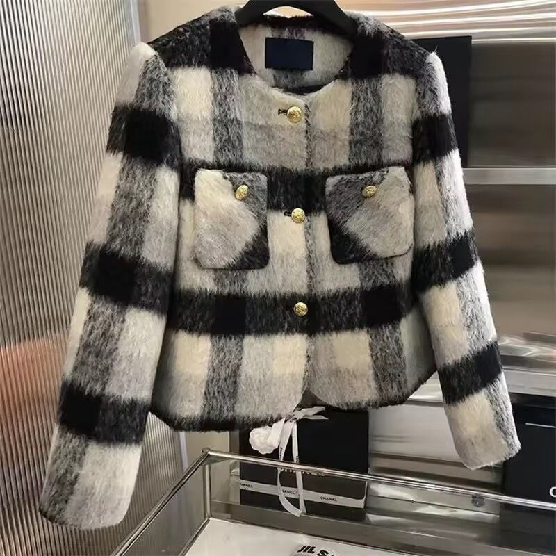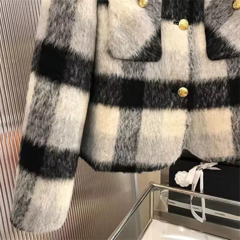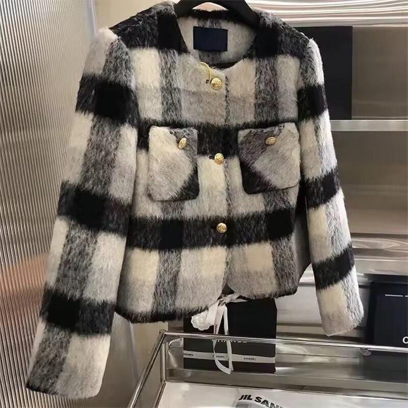 シャギーブロックチェックアウター(一ヶ月程でお届け)