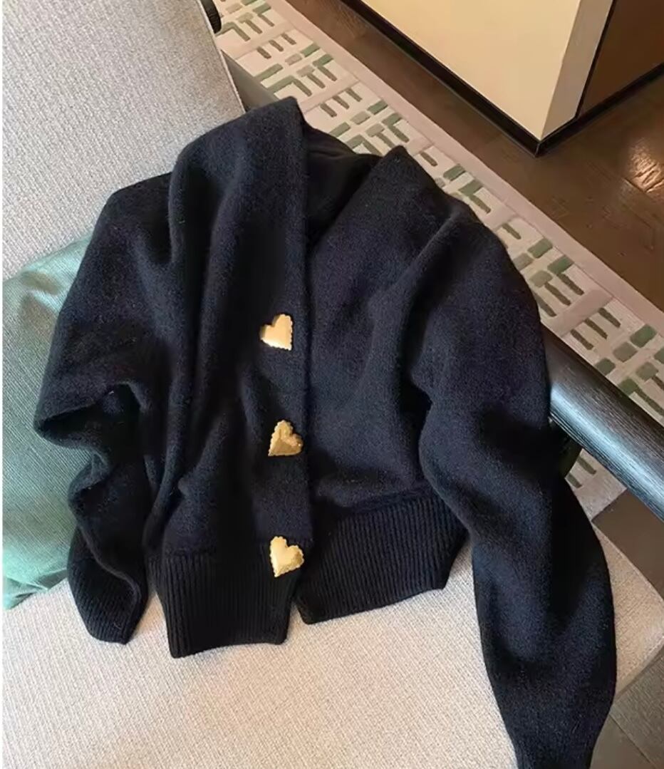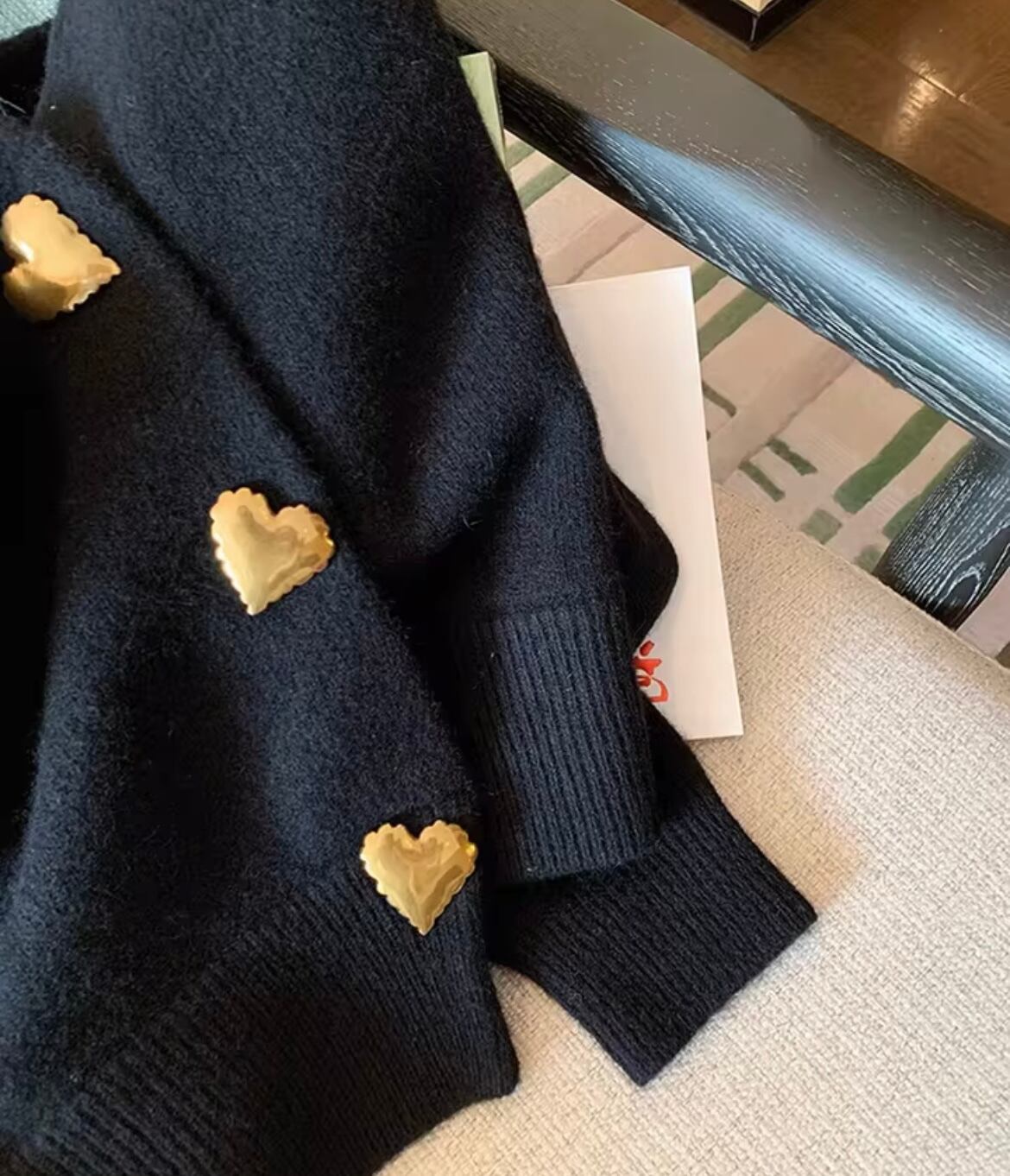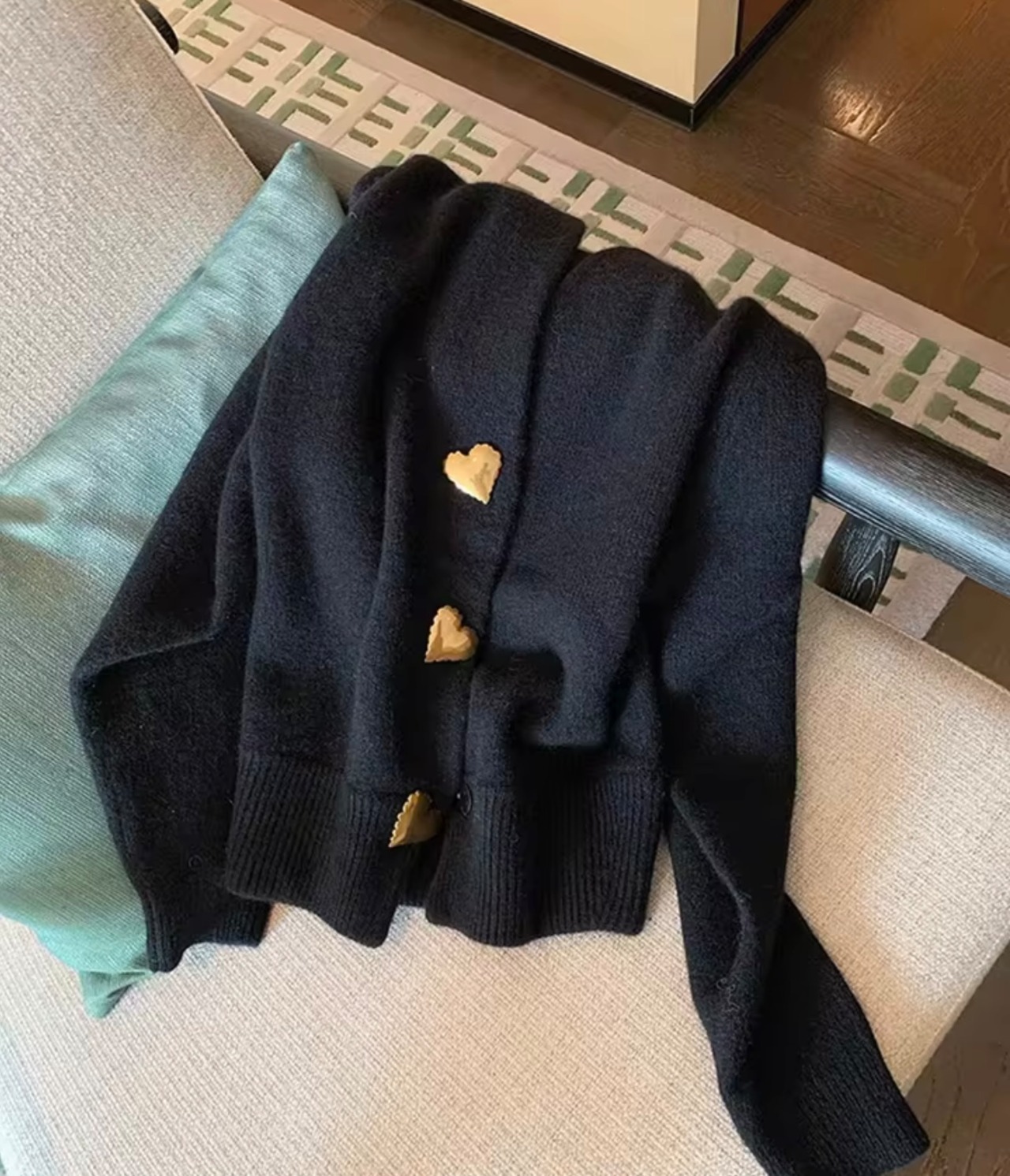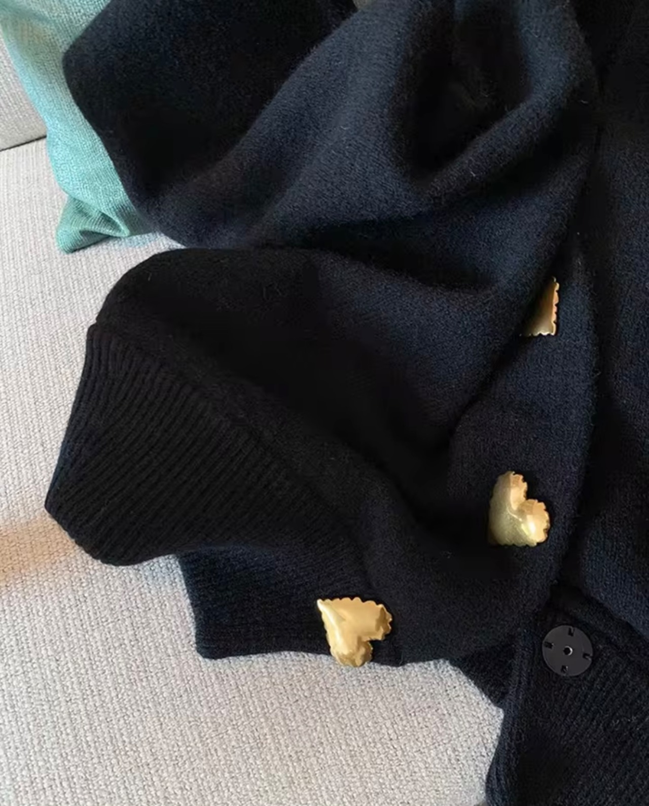 ゴールドのハートボタンが大人可愛いカーディガン。
