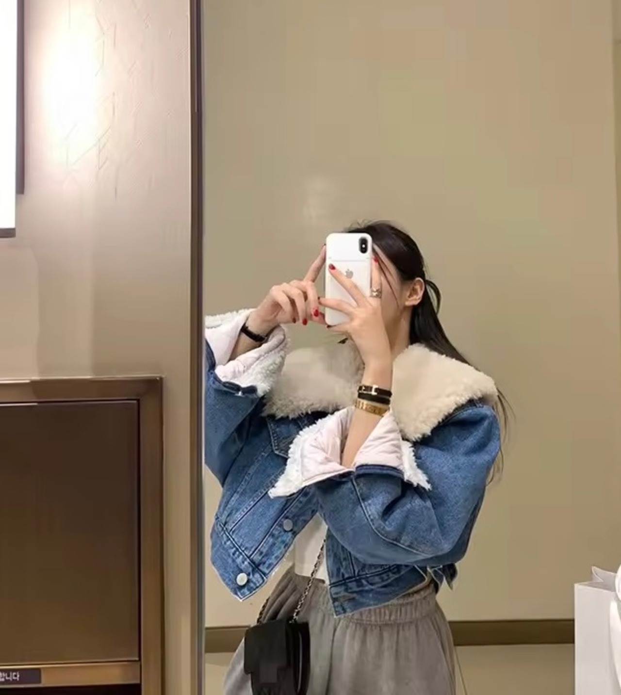 襟元とお袖がボアデザインになったデニムアウター。