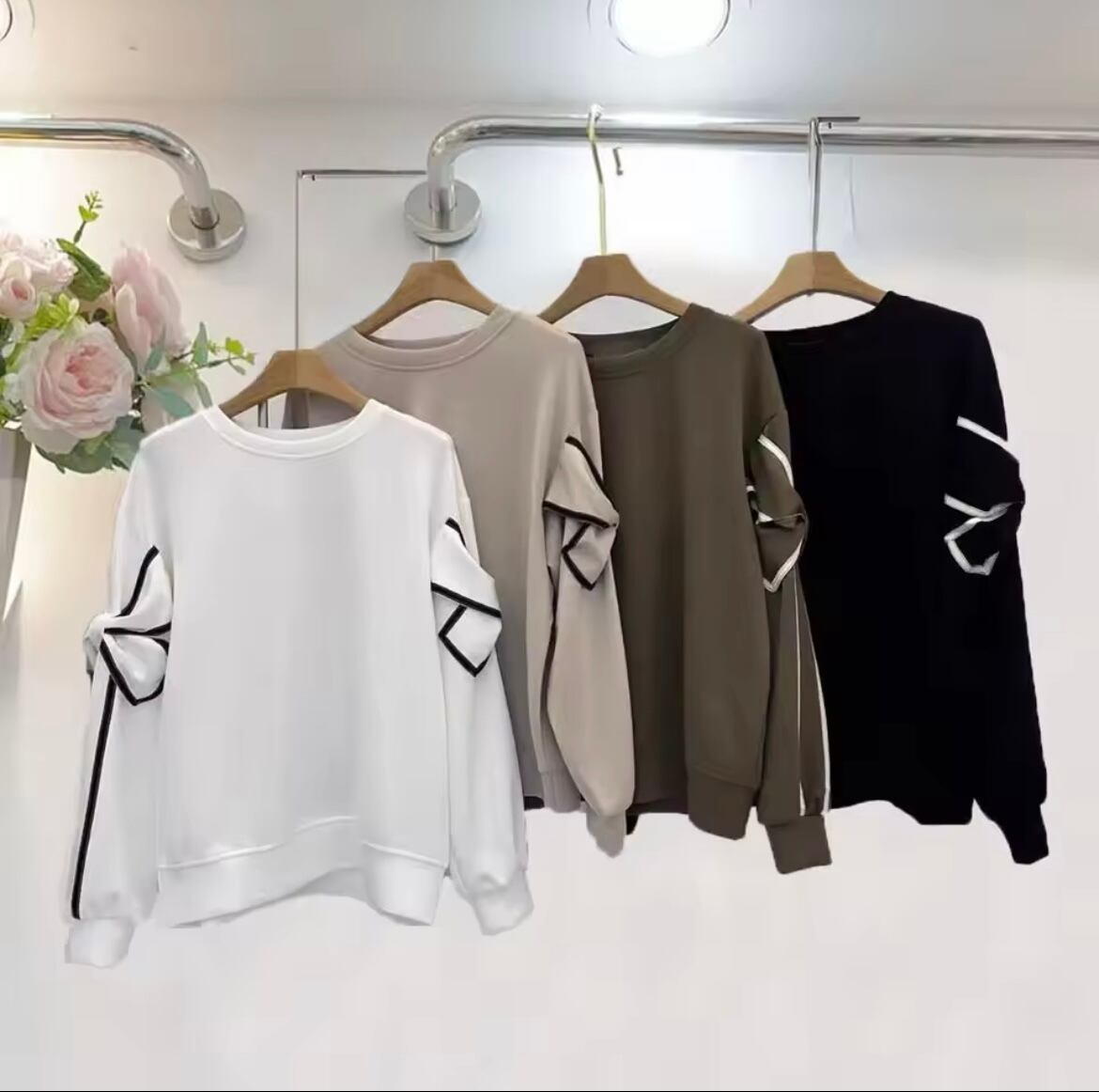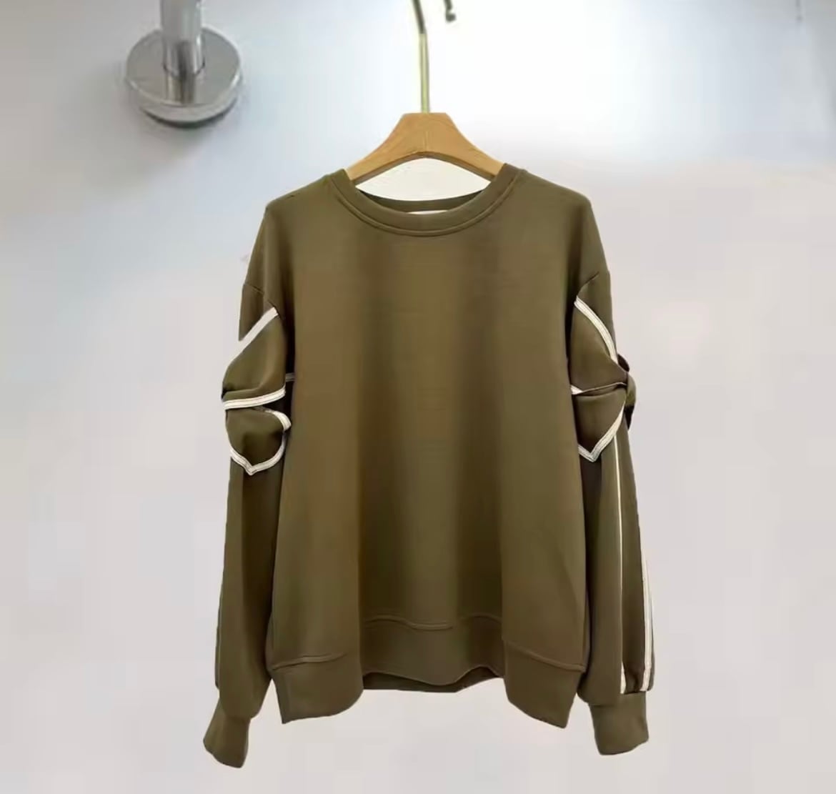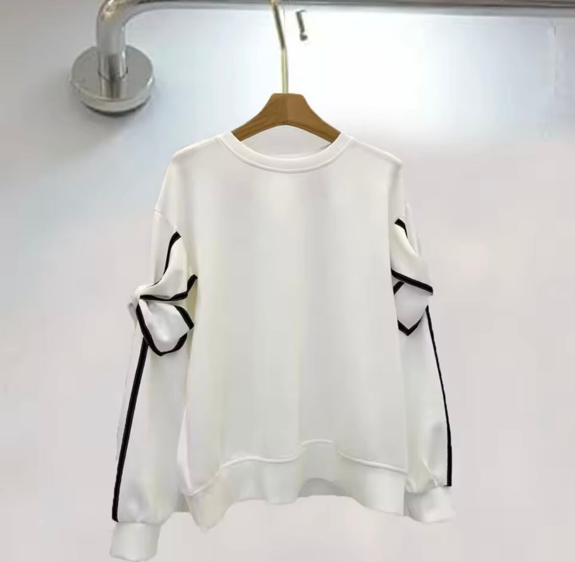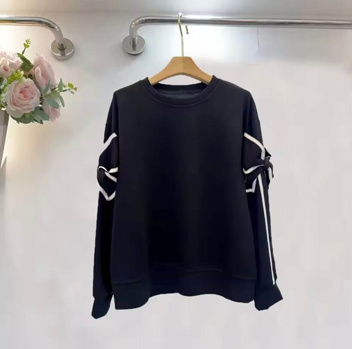 配色リボンがお袖にデザインされたトップス。