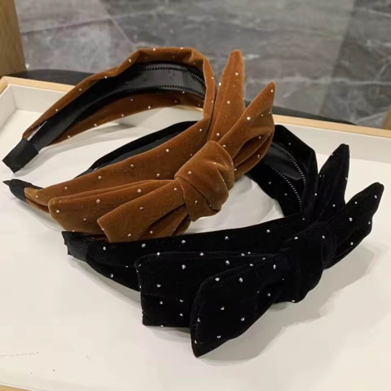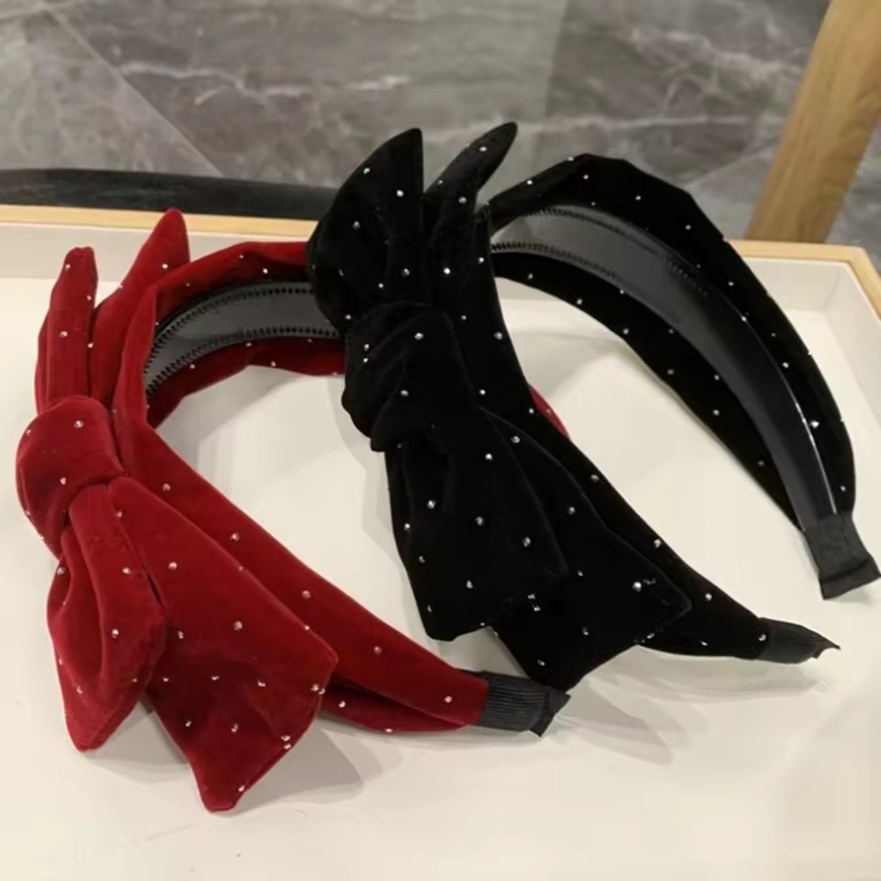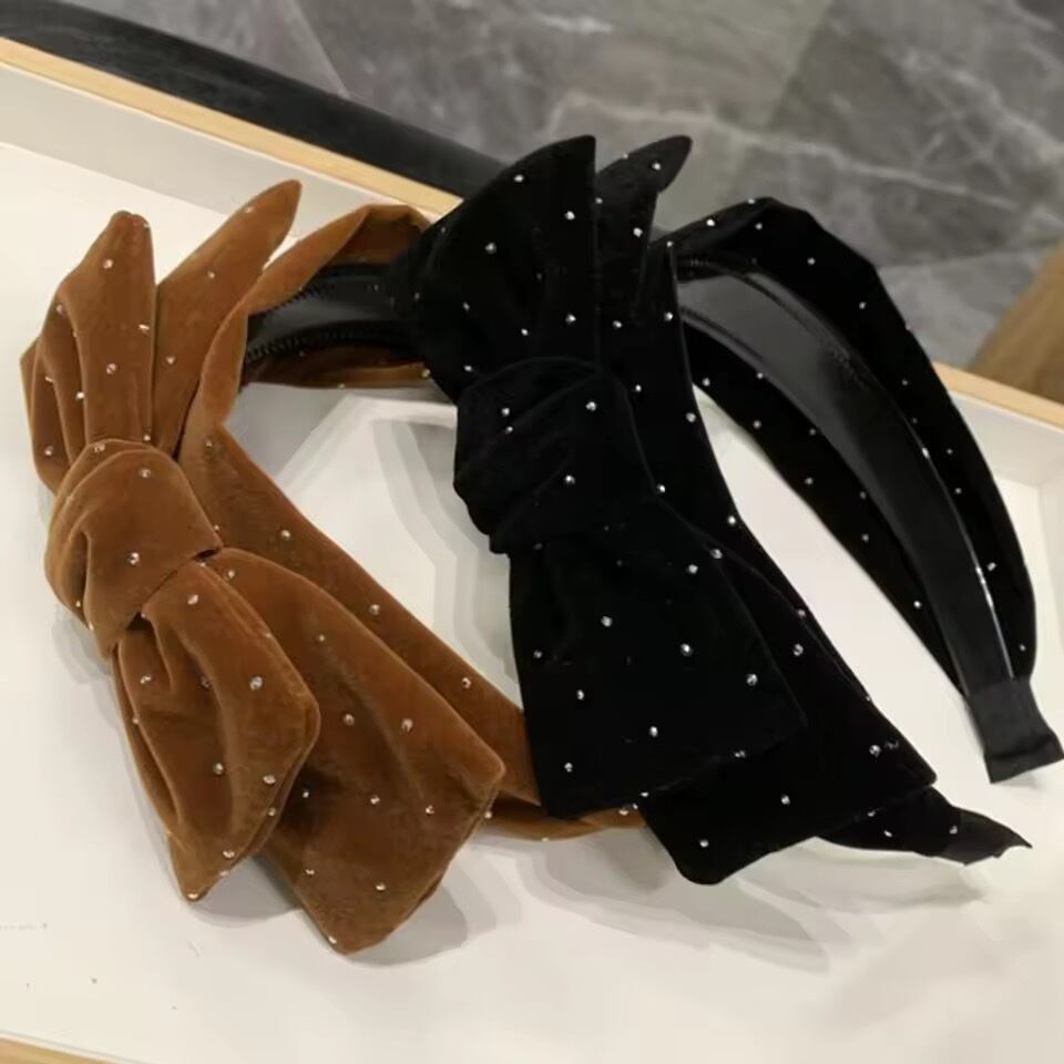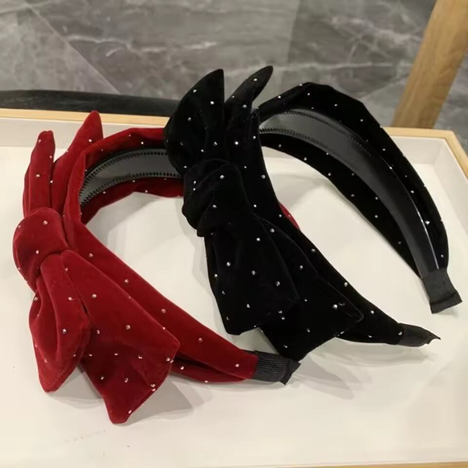 ストーンベロアリボンカチューシャ(一ヶ月程でお届け)