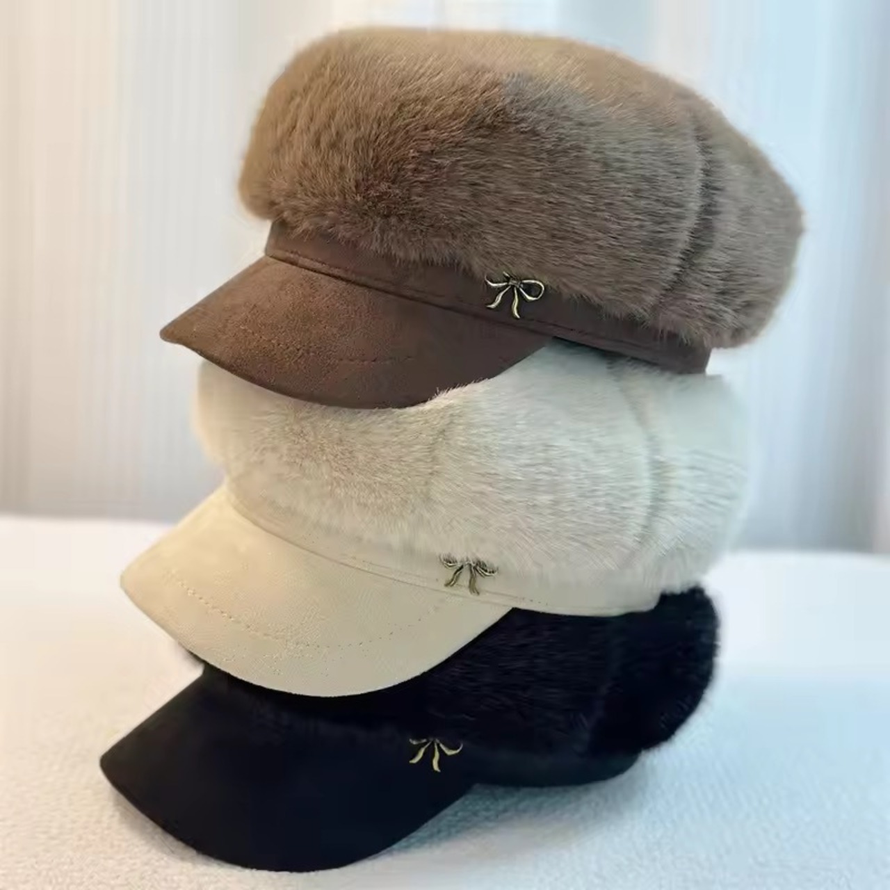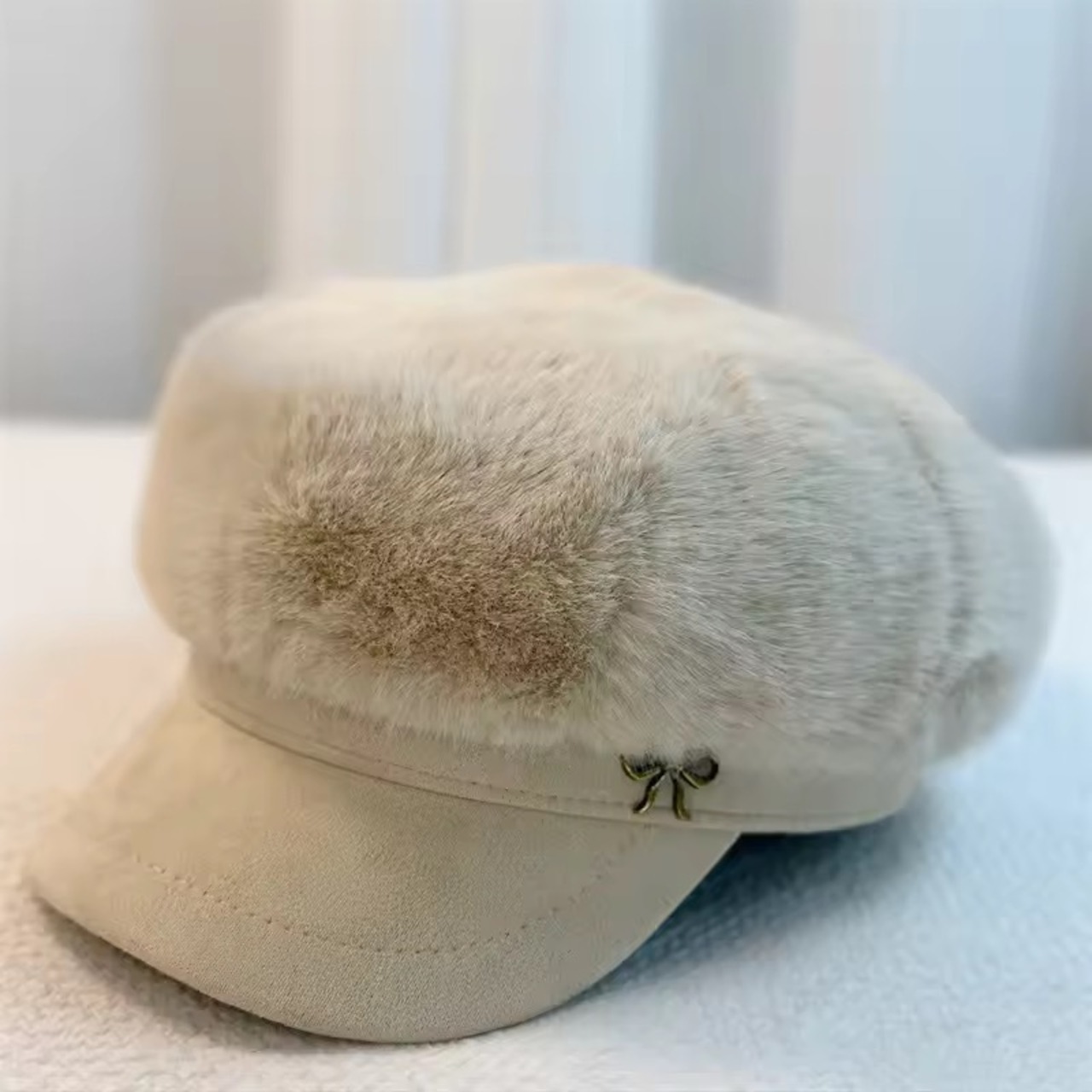 リボンがアクセントになり、秋冬コーデを華やかにオシャレに仕上げる帽子です。