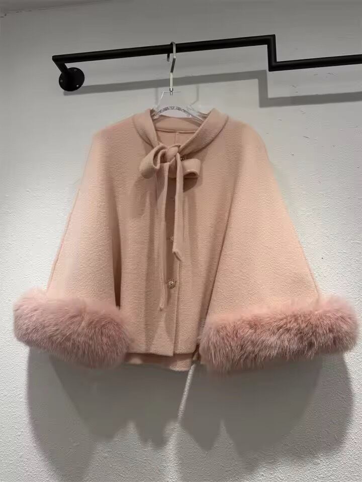 ファーリボンポンチョコート(一ヶ月程でお届け)