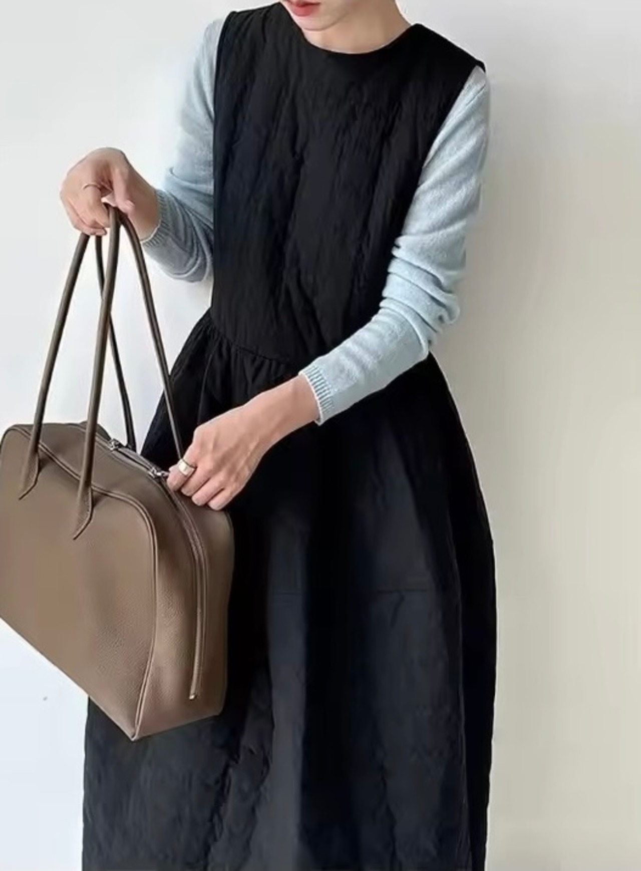 インナーはブラウスからニット、Tシャツとシーズンレスにお楽しみ頂けるワンピースです。