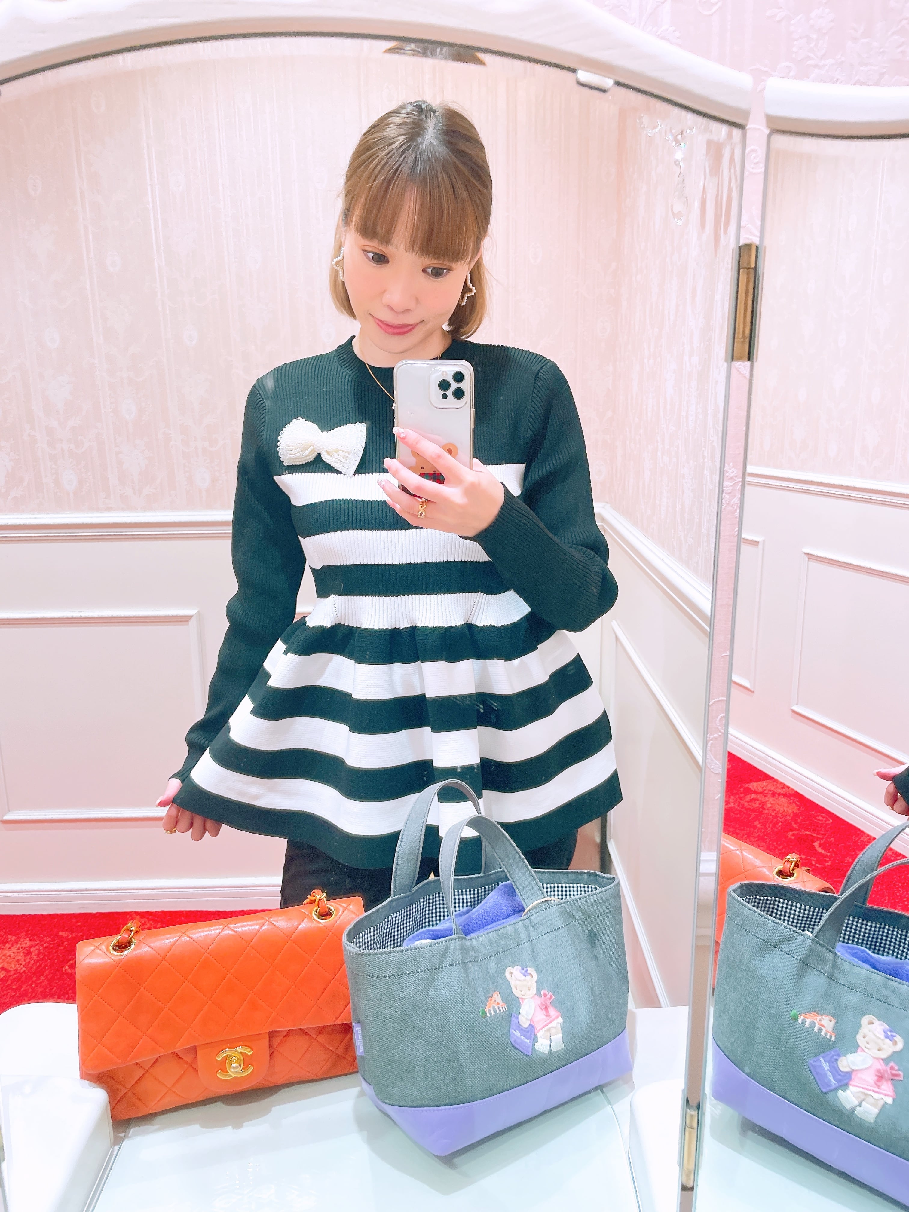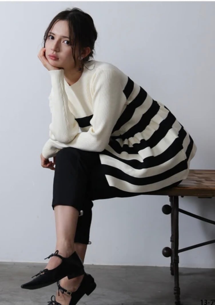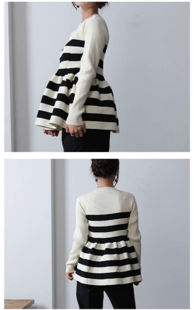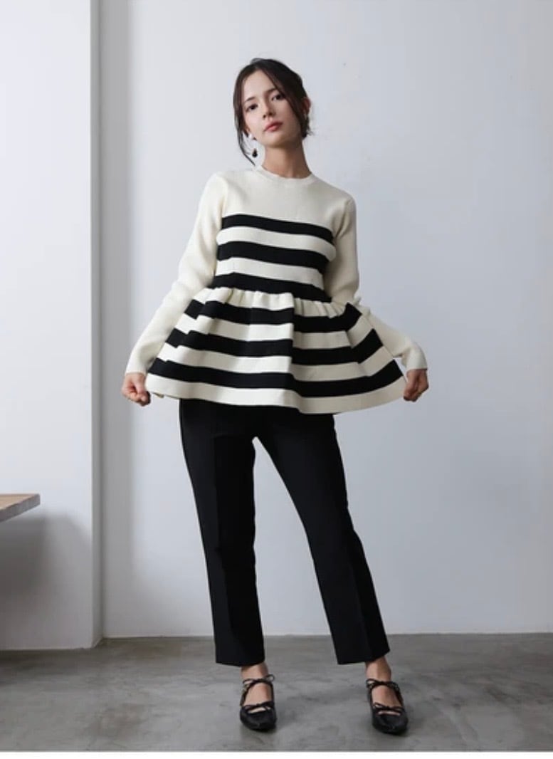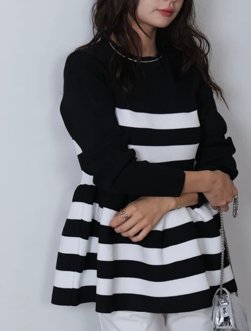 ペプラムボーダークルーネックニット (即納)