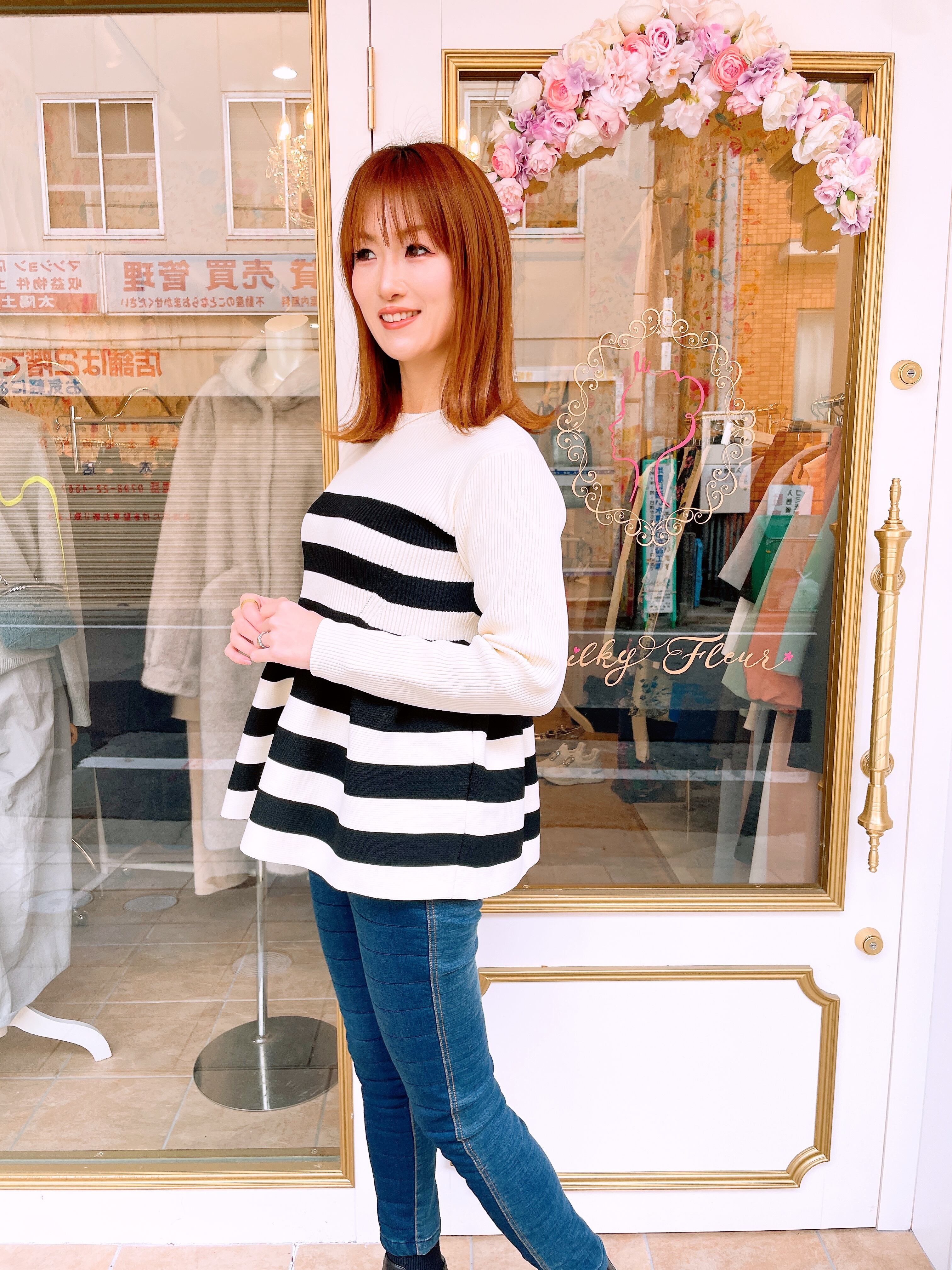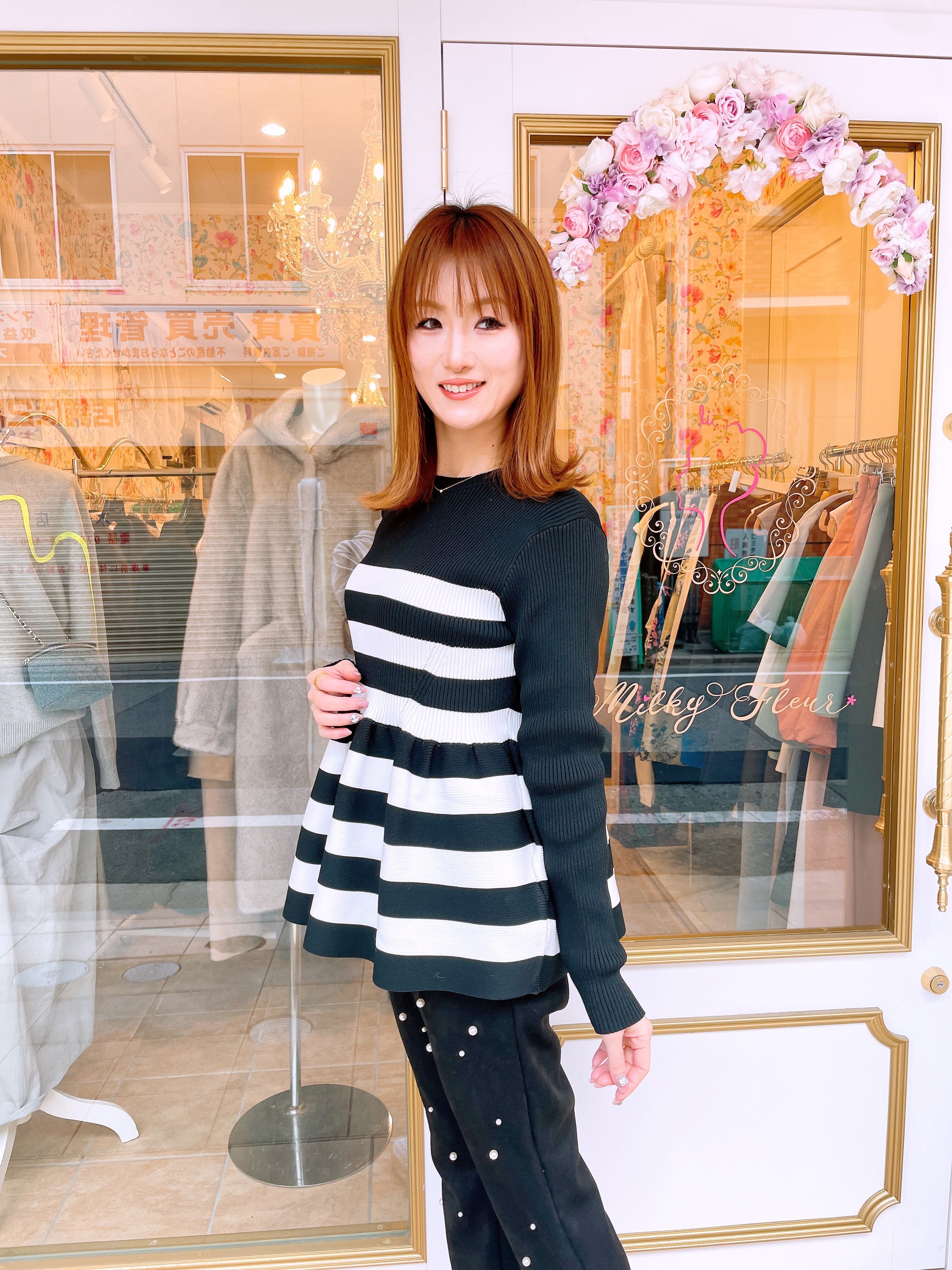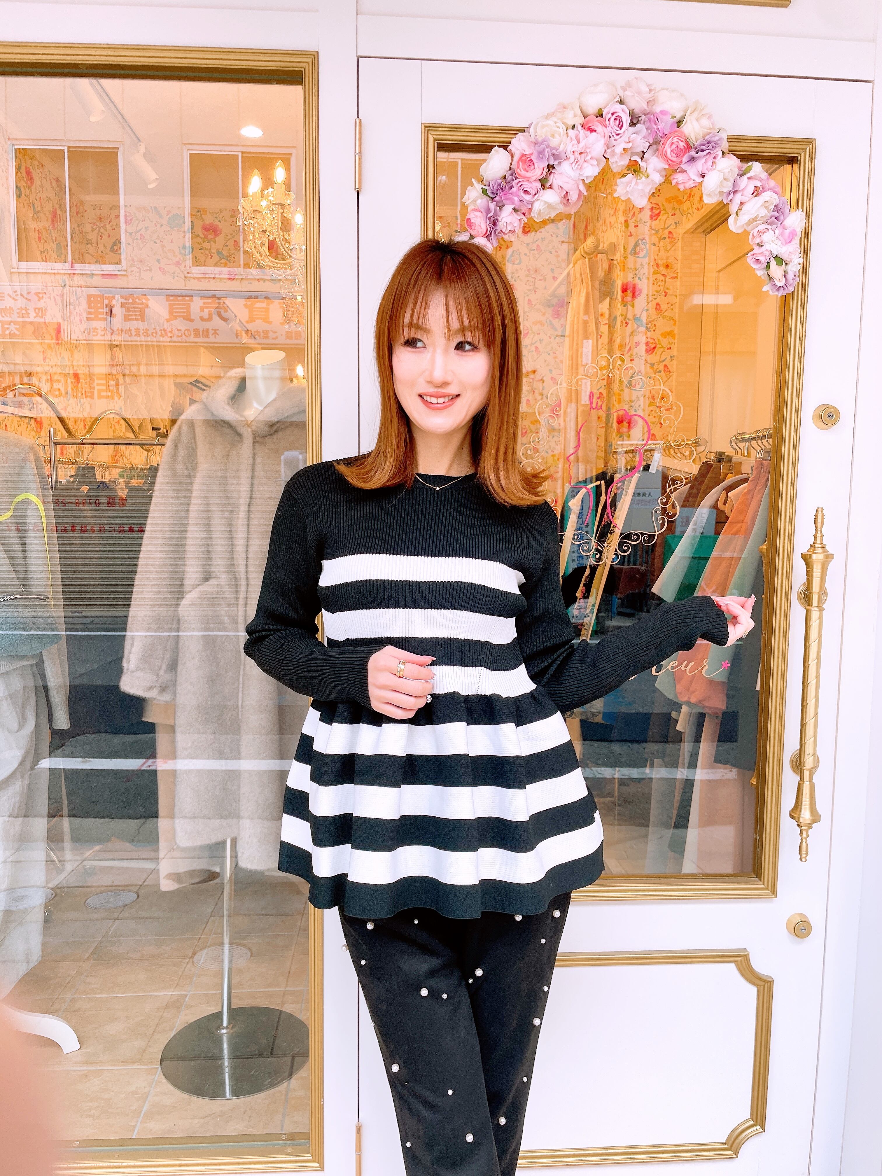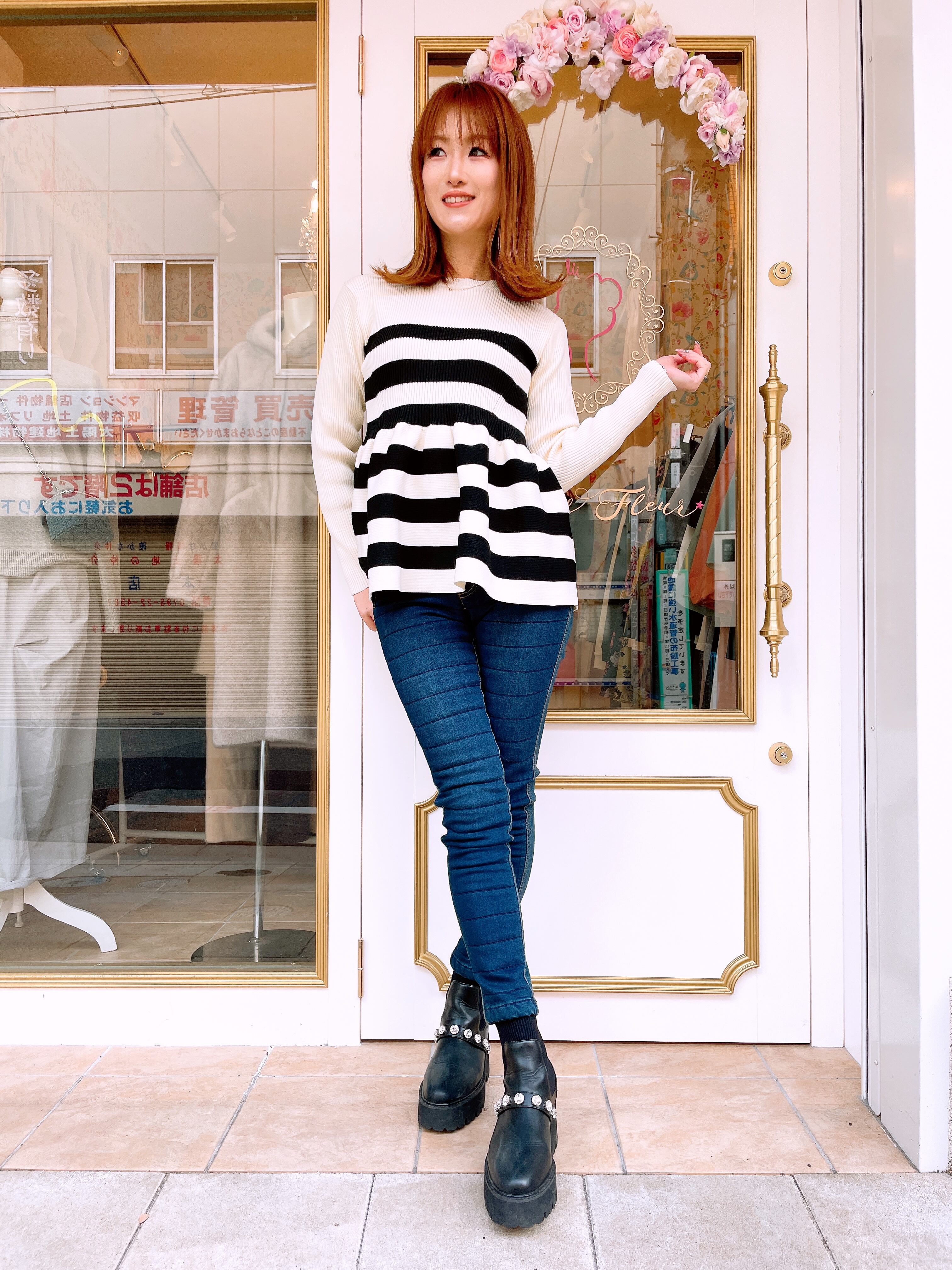 piccin ペプラムボーダークルーネックニット (即納)