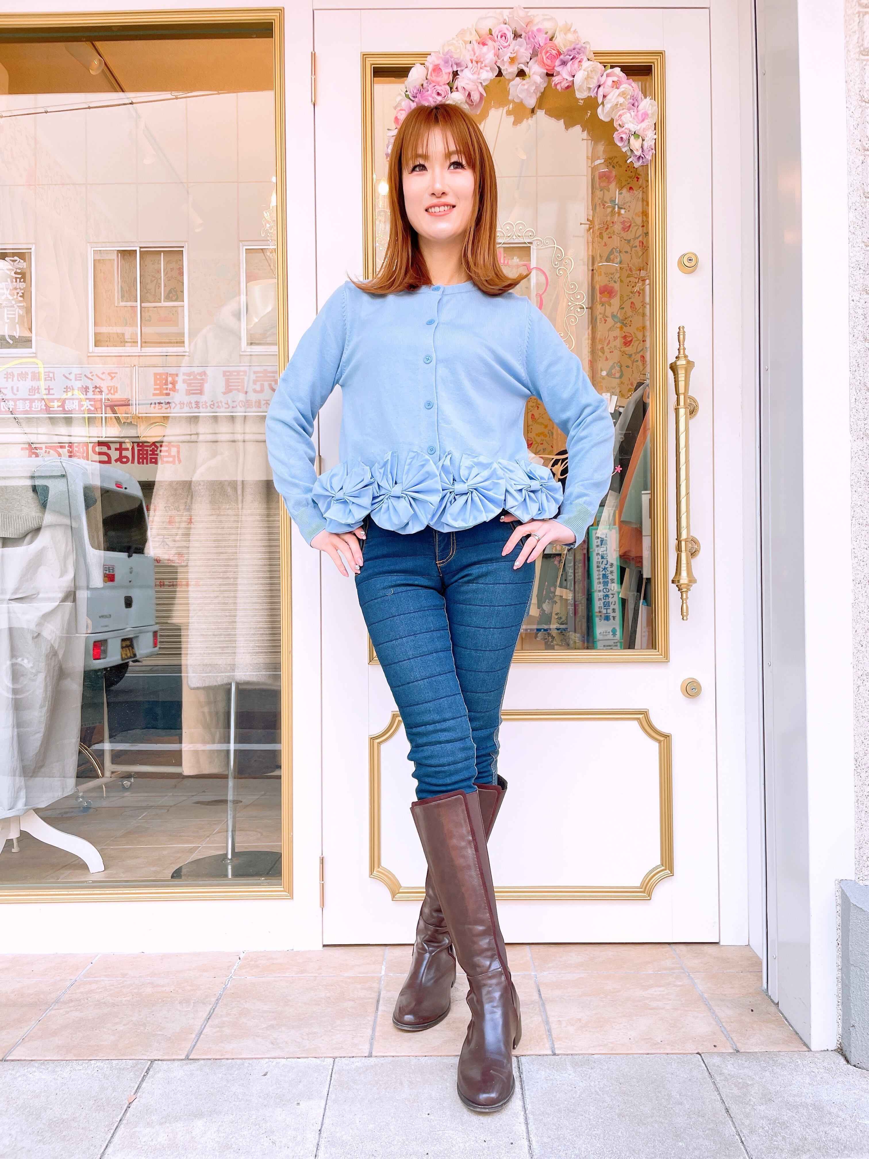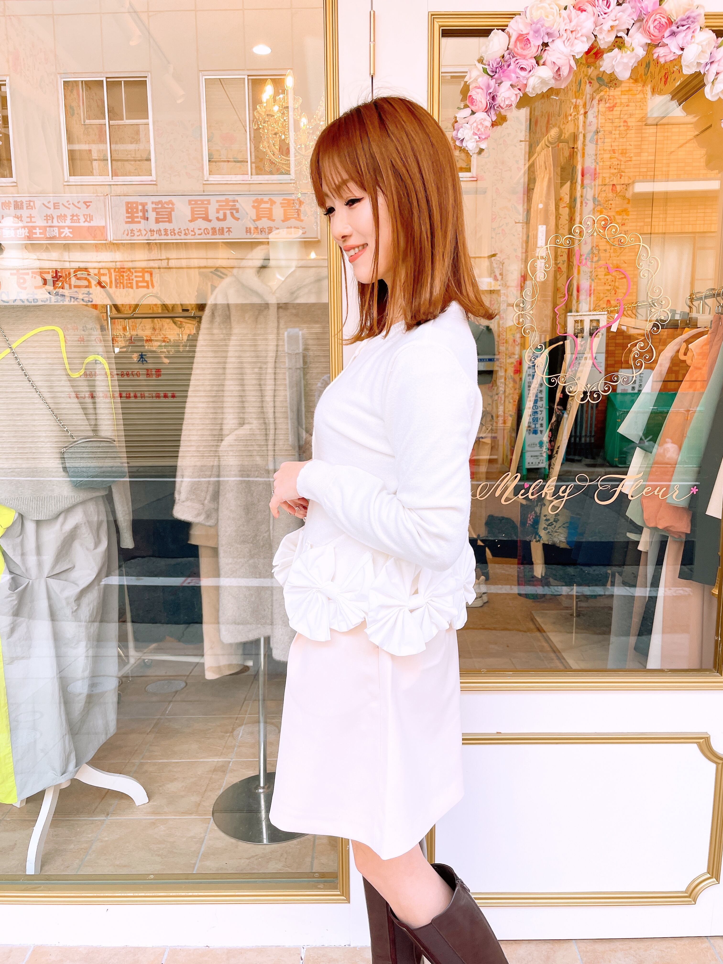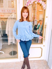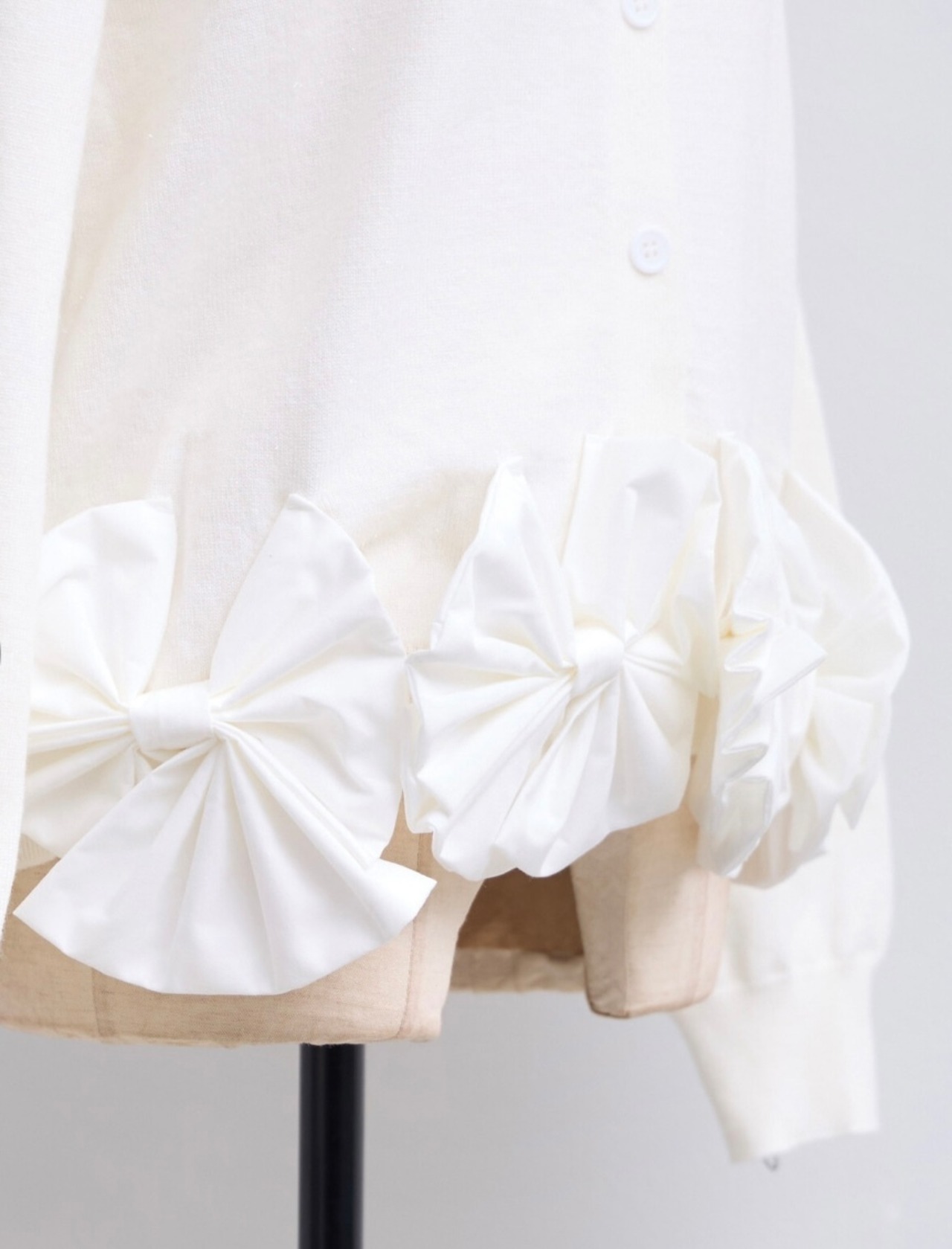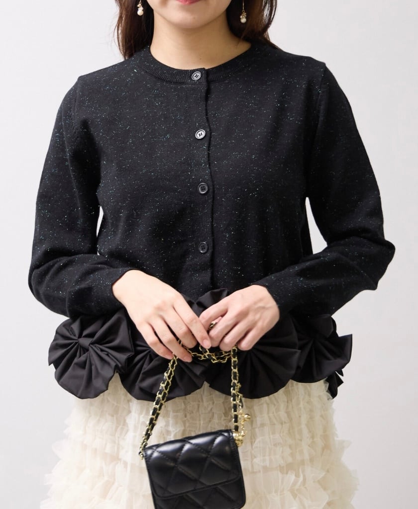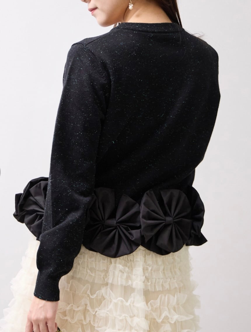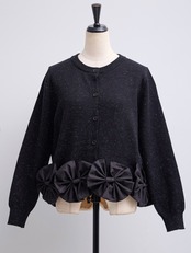 裾部分の立体リボンが華やかなニットカーディガン。