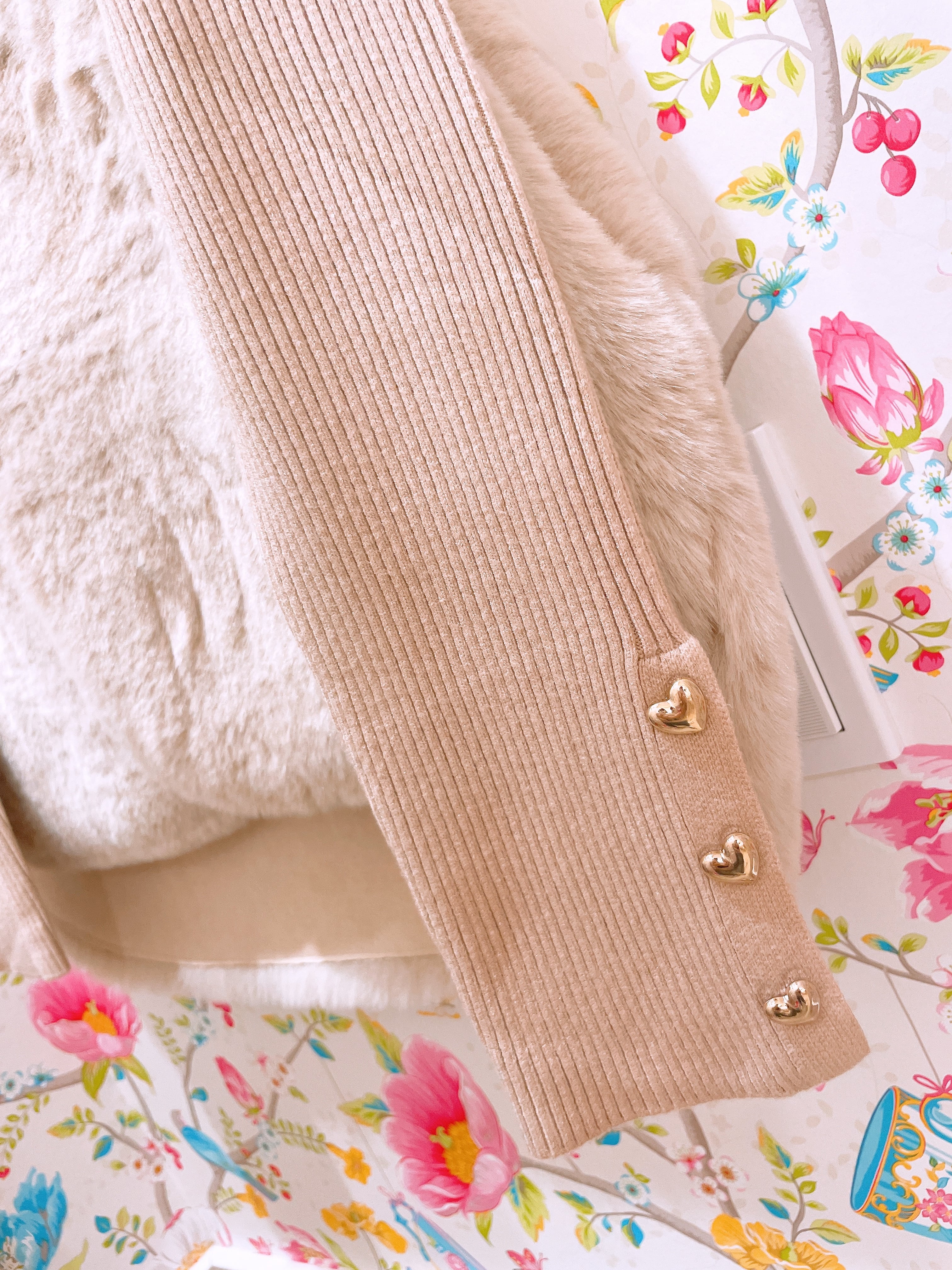 袖口のハート型のゴールドボタンでキュートなアクセントを加えたハイネックニットトップス。