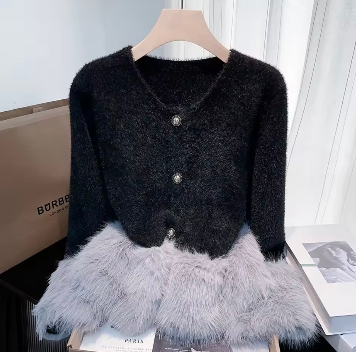 裾ファーニットカーディガン(一ヶ月程でお届け)