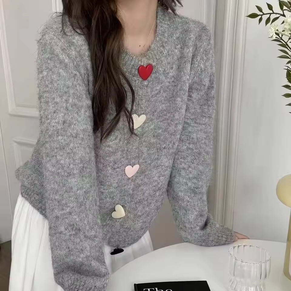 マルチカラーハートボタンニットカーディガン(一ヶ月程でお届け)