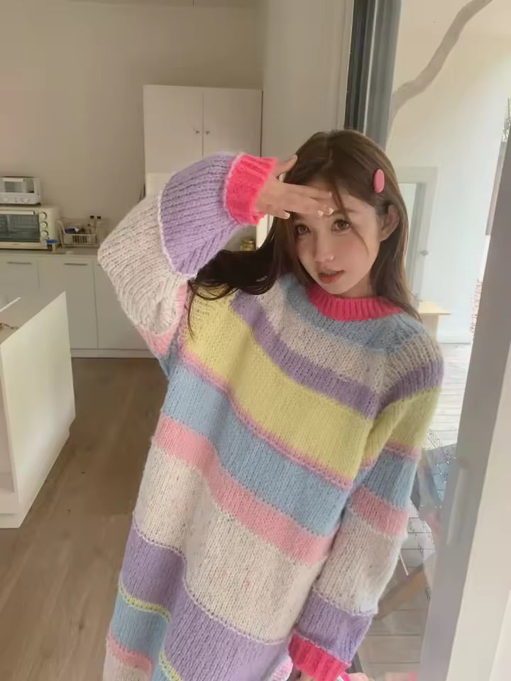 マルチカラーボーダーニットワンピース(一ヶ月程でお届け)
