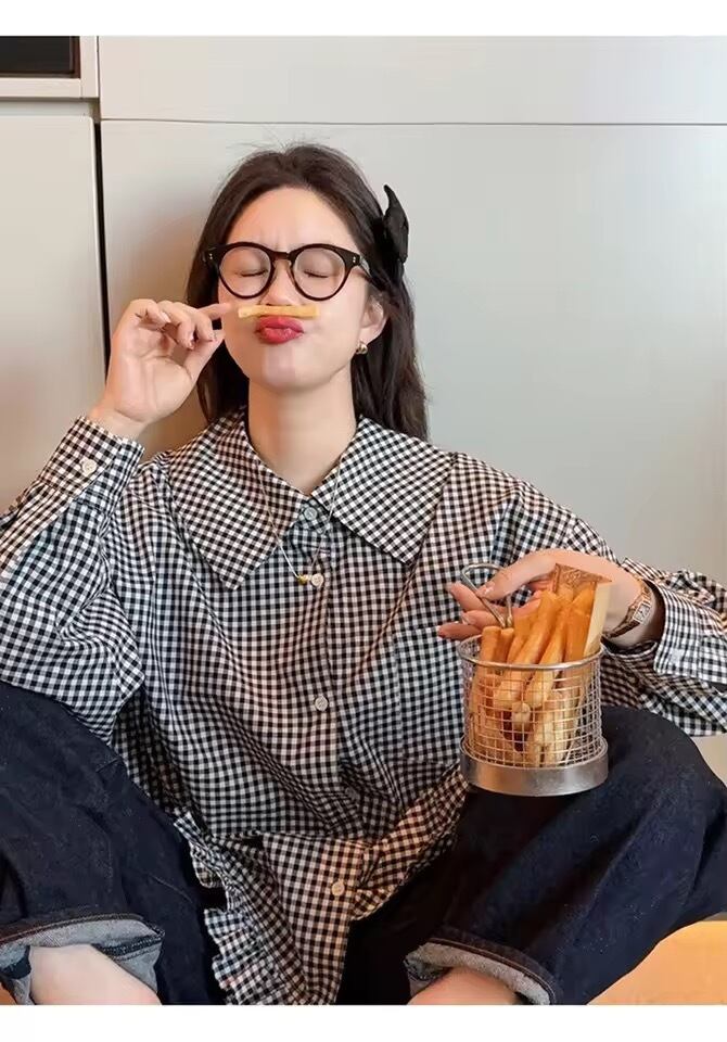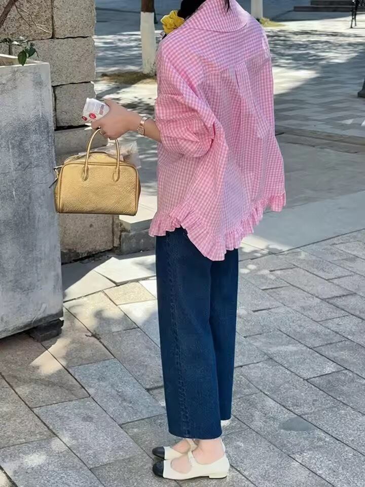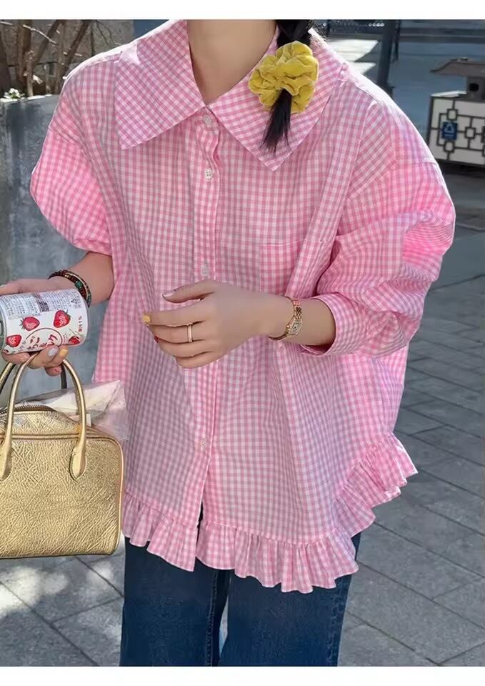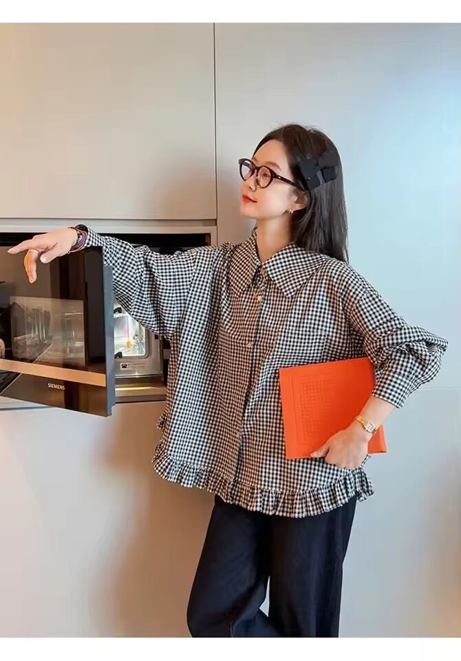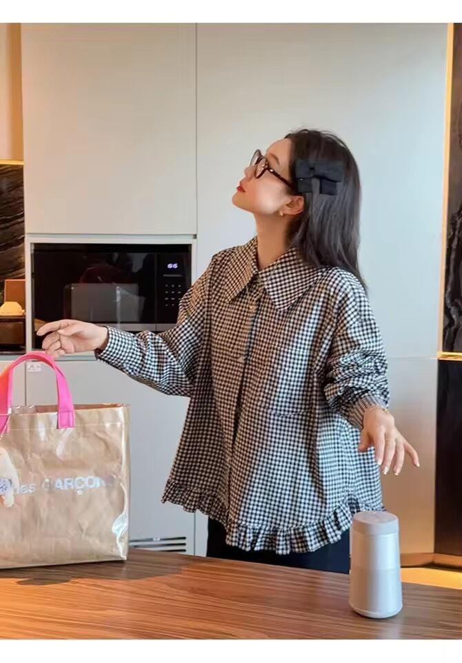 フリルギンガムブラウス(一ヶ月程でお届け)
