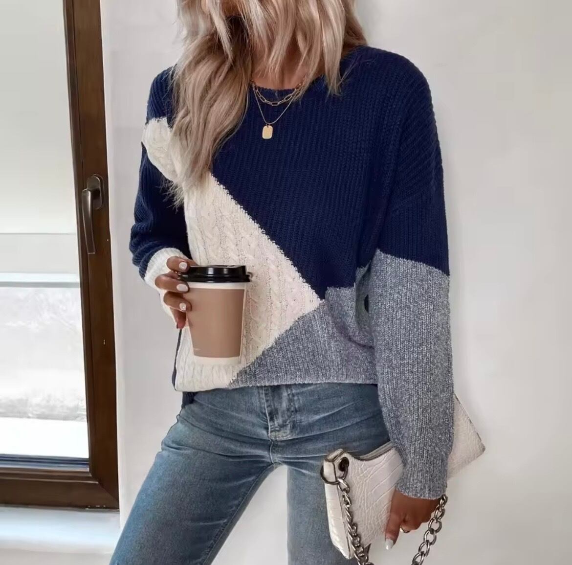 配色デザインがオシャレなバイカラーニット。