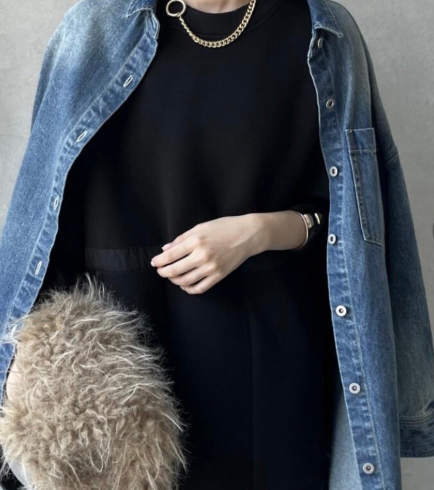 リラックスして着て頂けるデザインで、バッグやシューズでエレガントにも。