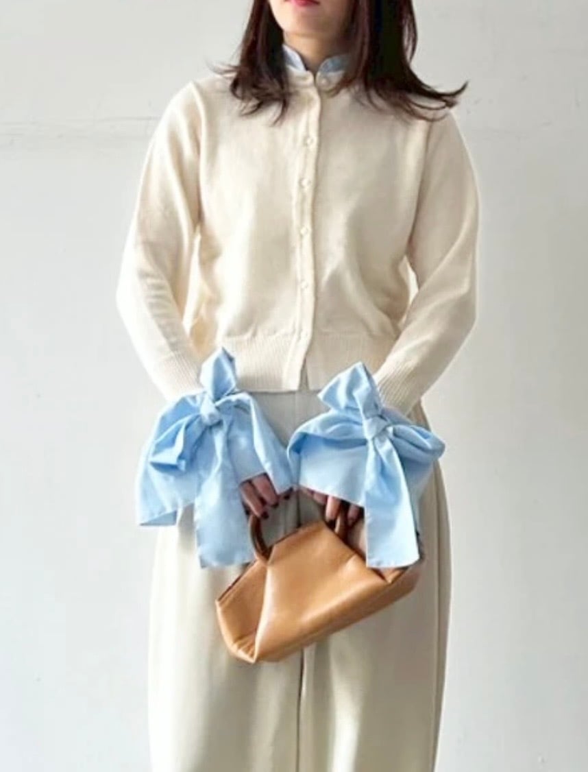 リボンスリーブドッキングカーディガン(一週間程でお届け)