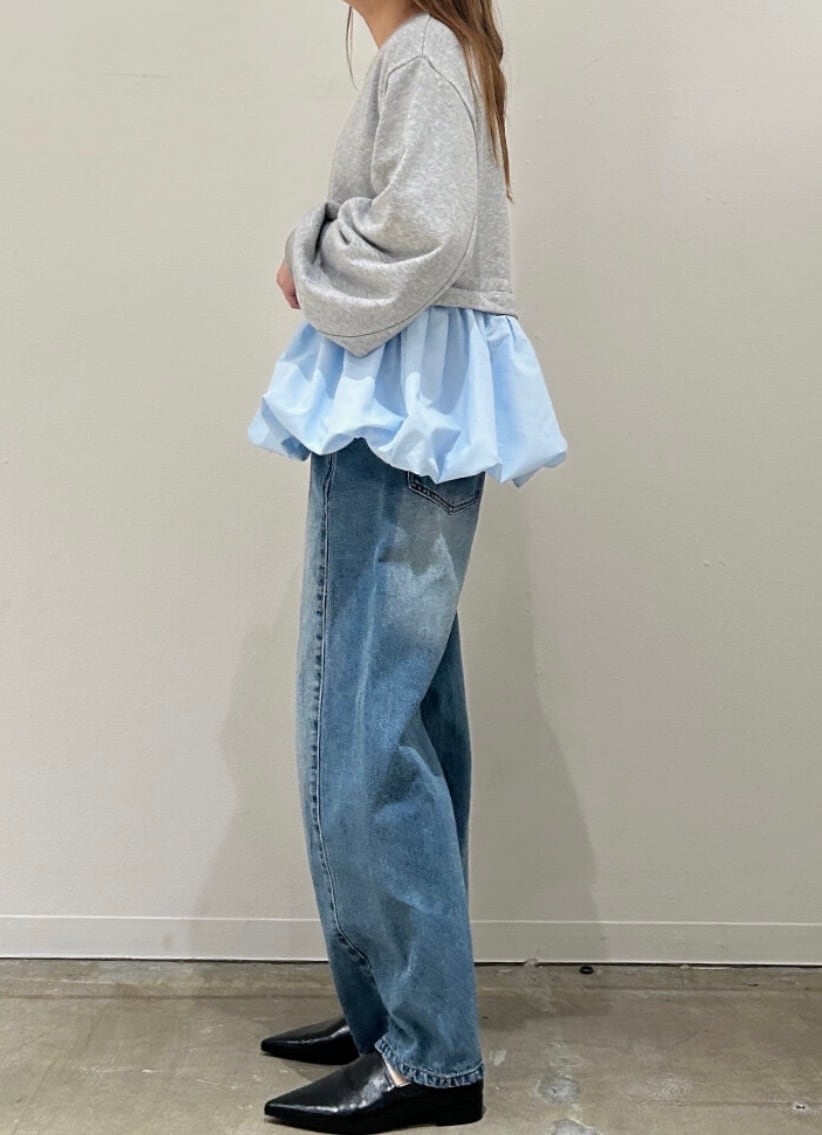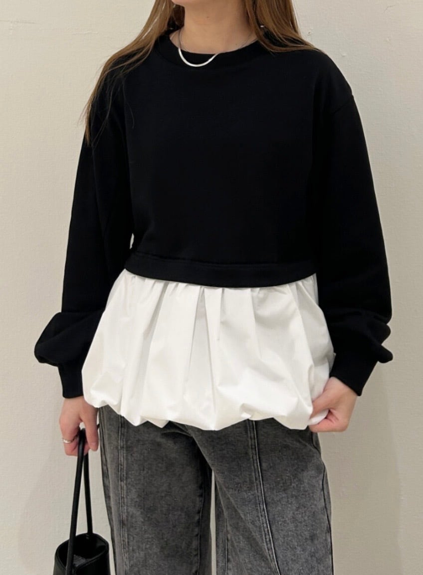 ウエスト下から切り替えたバルーンシルエットが、立体感と女性らしさをプラスします。