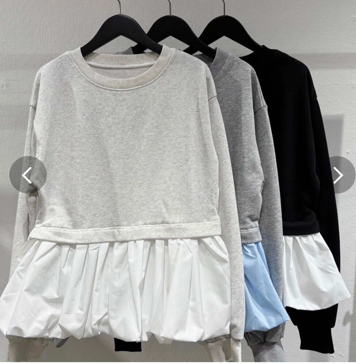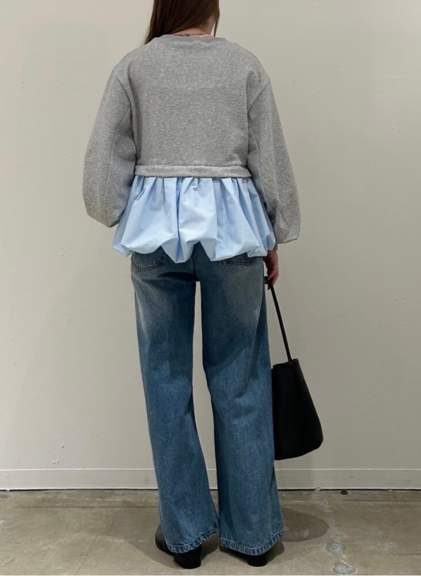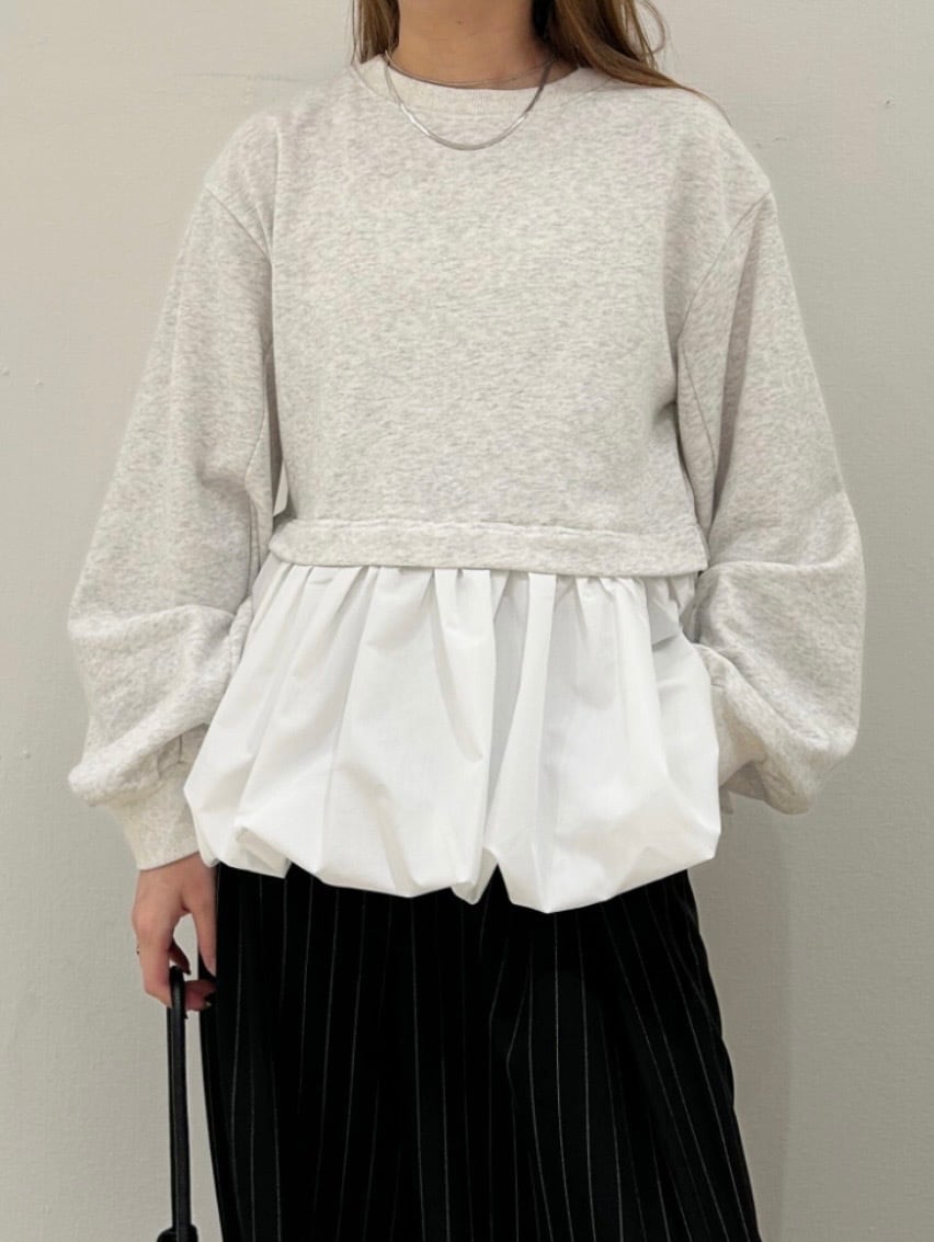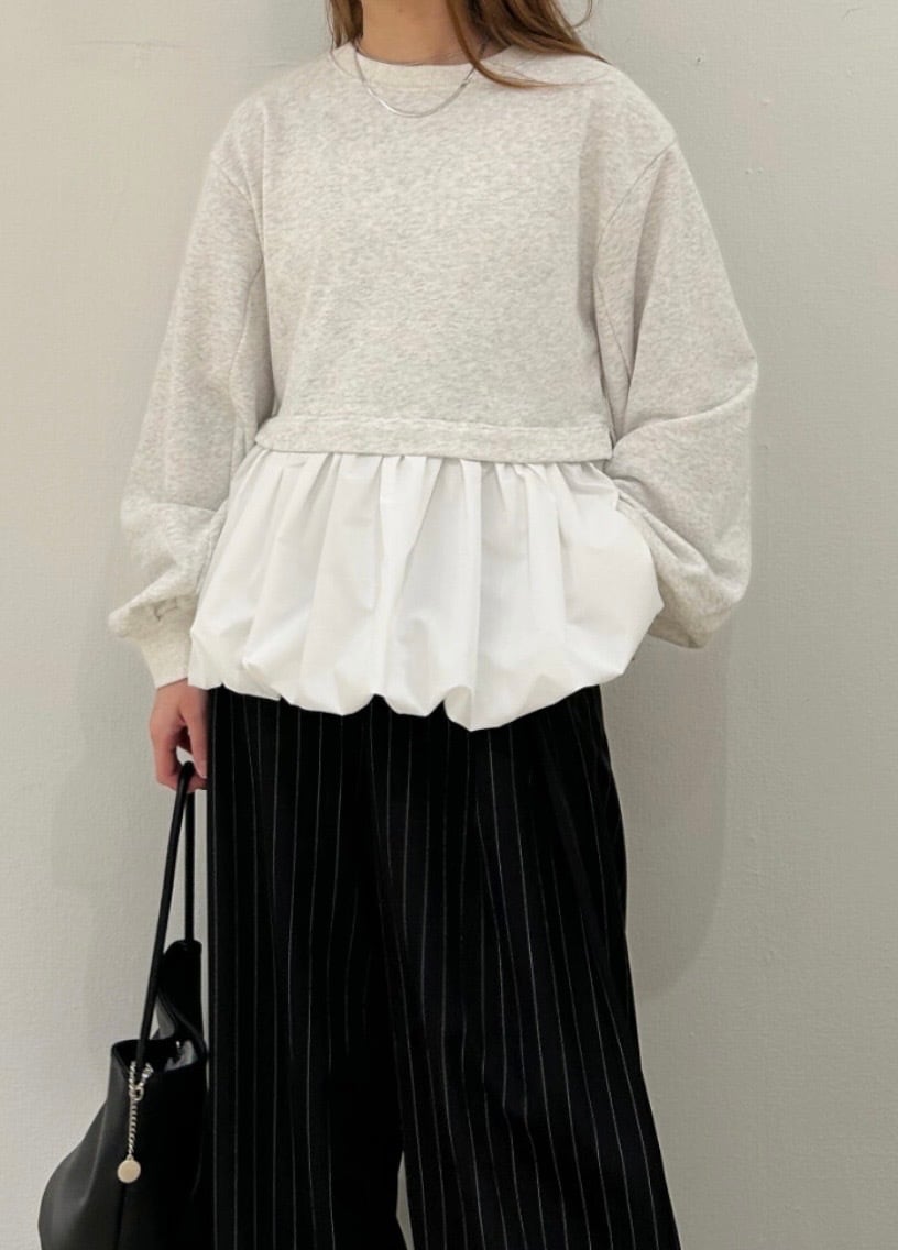カジュアルな裏毛ときれいめ素材のコントラストで、デイリーにもきちんと感のあるスタイリングに。