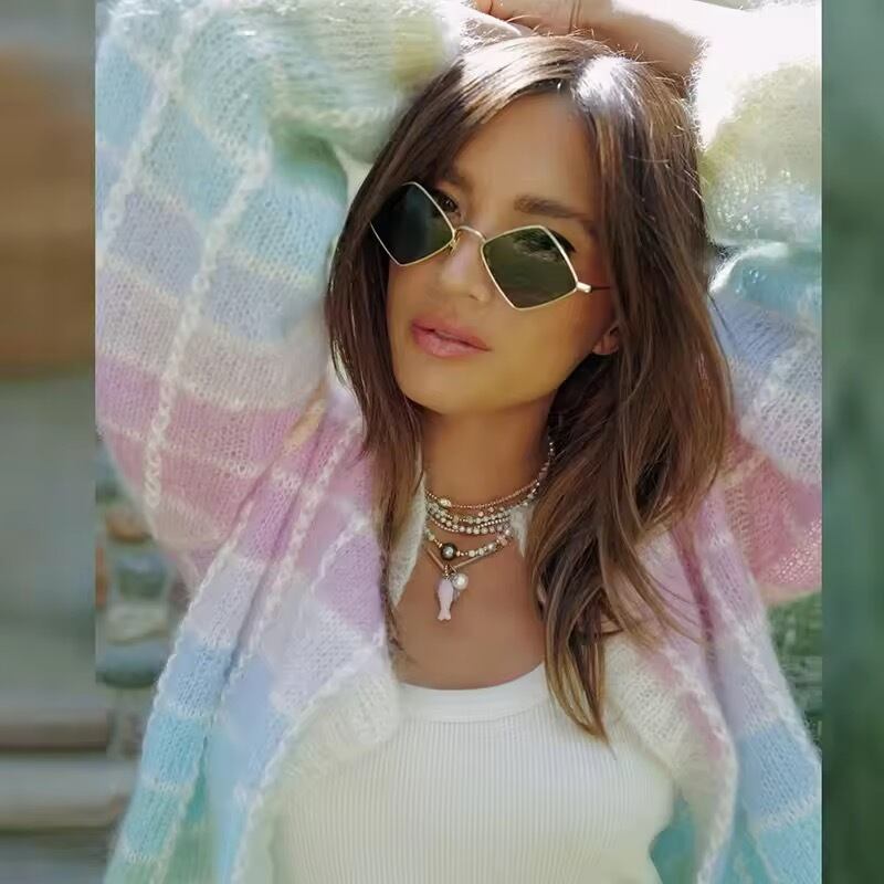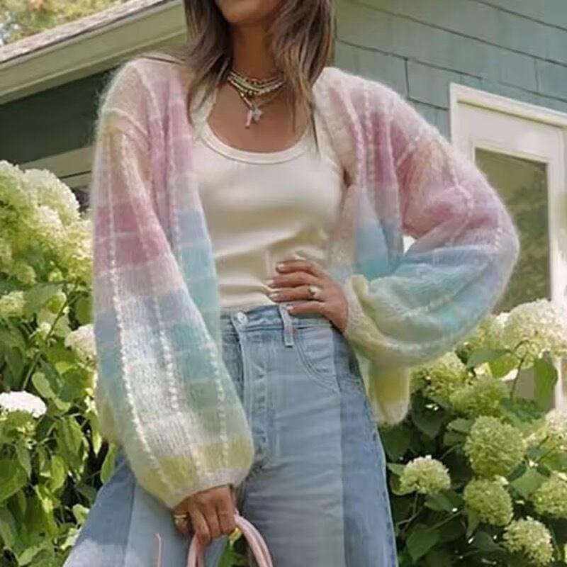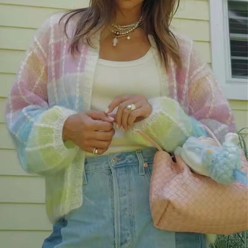 グラデーションマルチカラーが華やかなチェックニット。