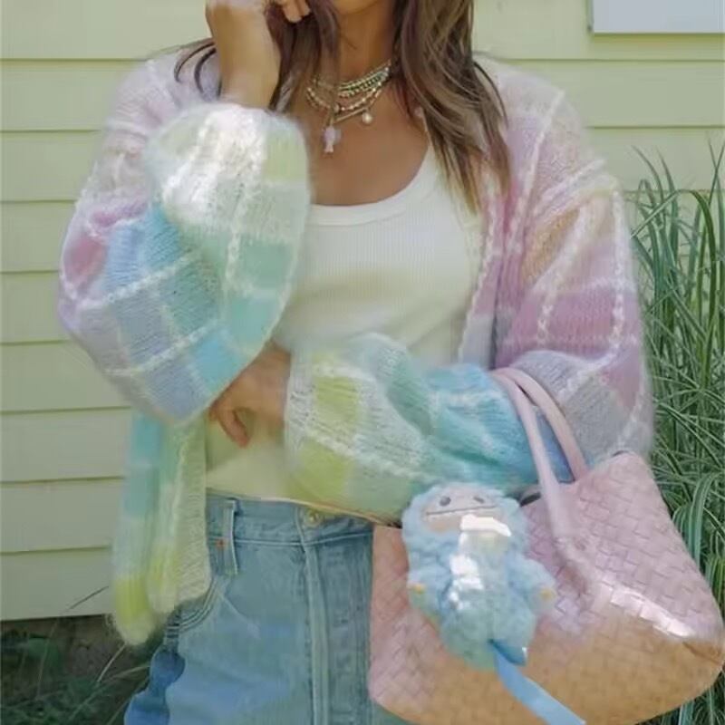 マルチカラーチェックニットカーディガン(一ヶ月程でお届け)