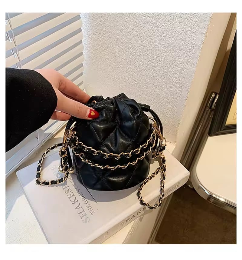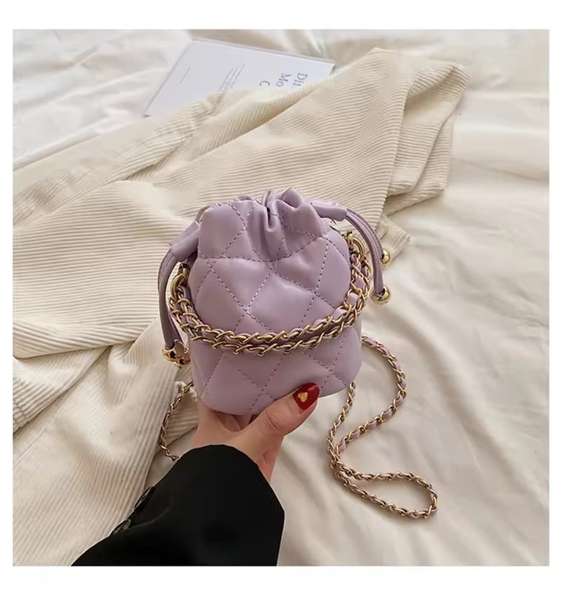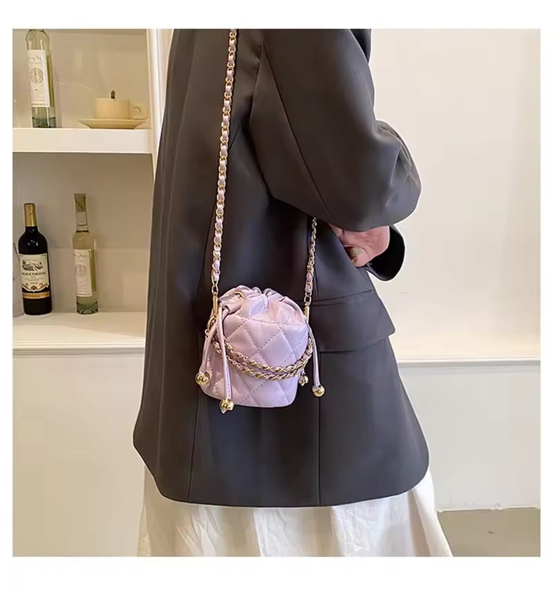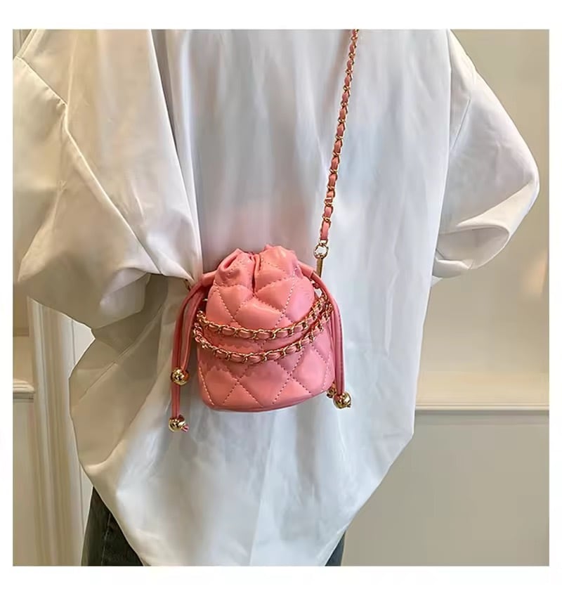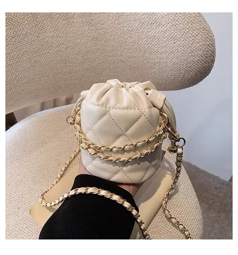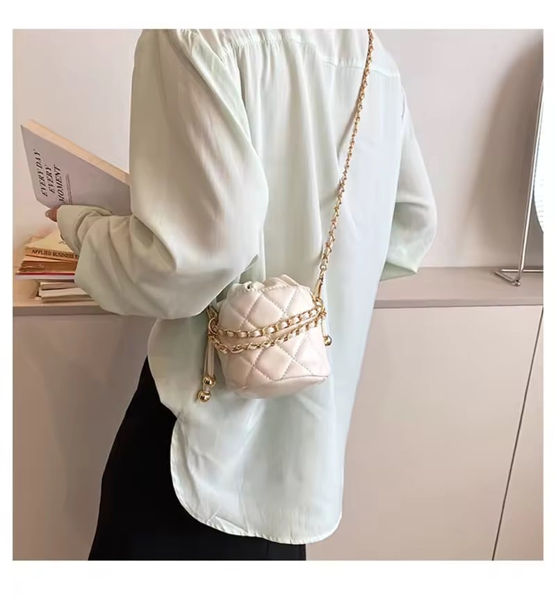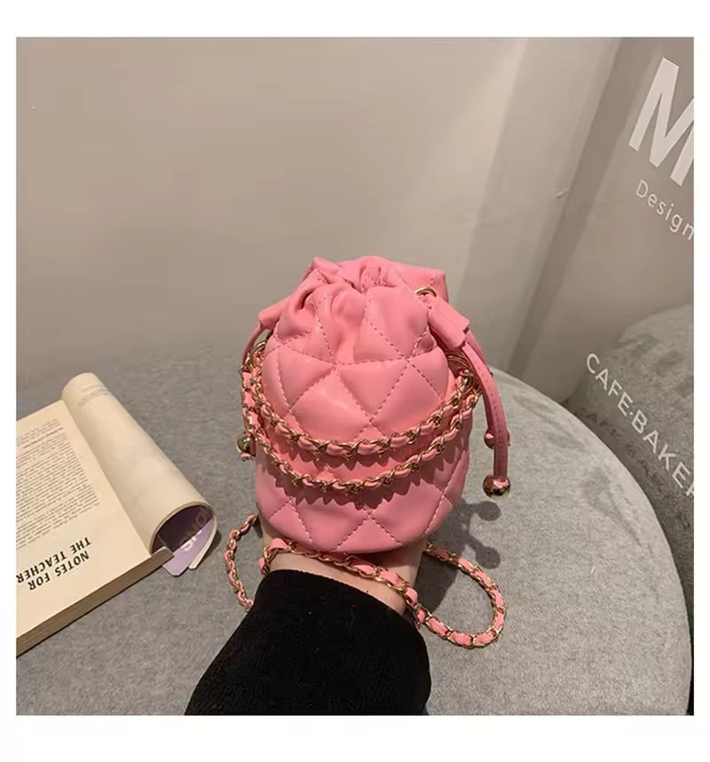 コロンとしたミニサイズが可愛いキルティングチェーンバッグ。