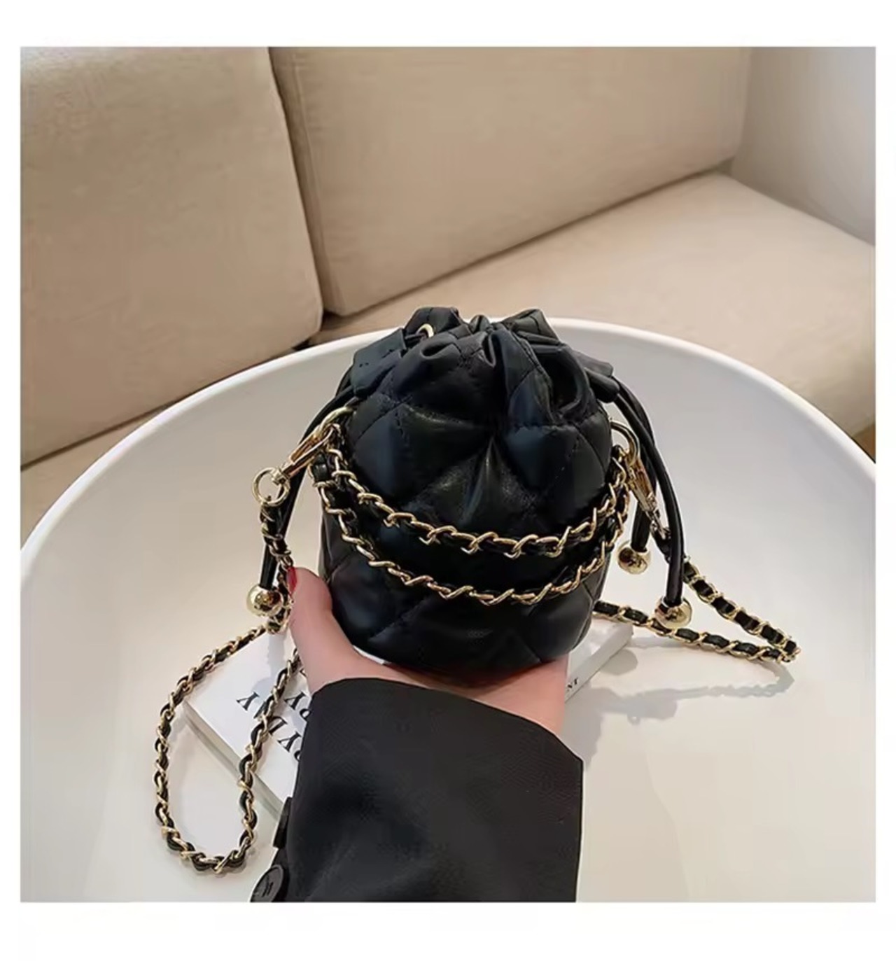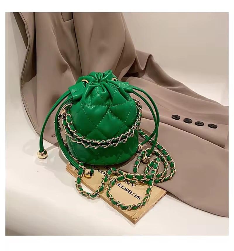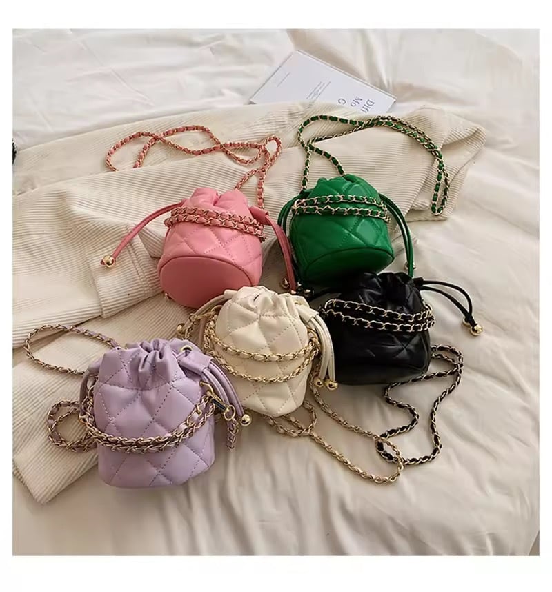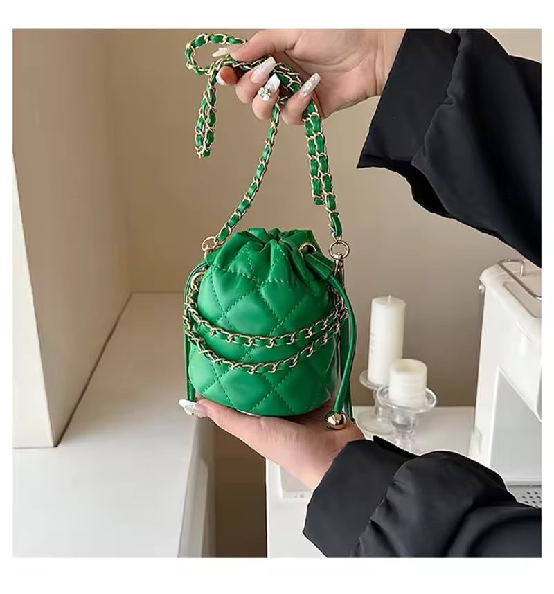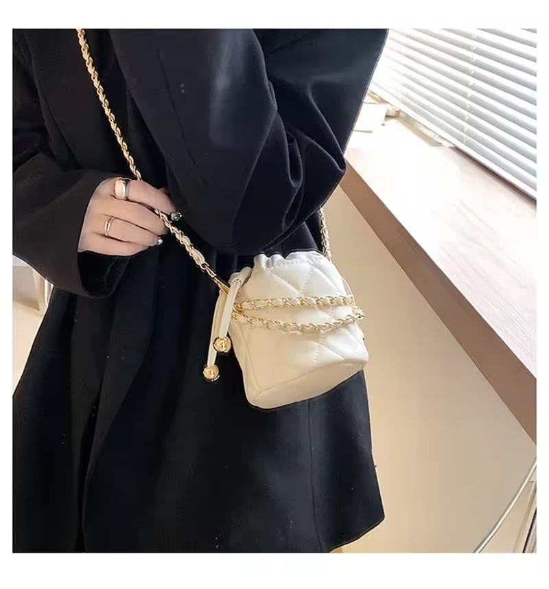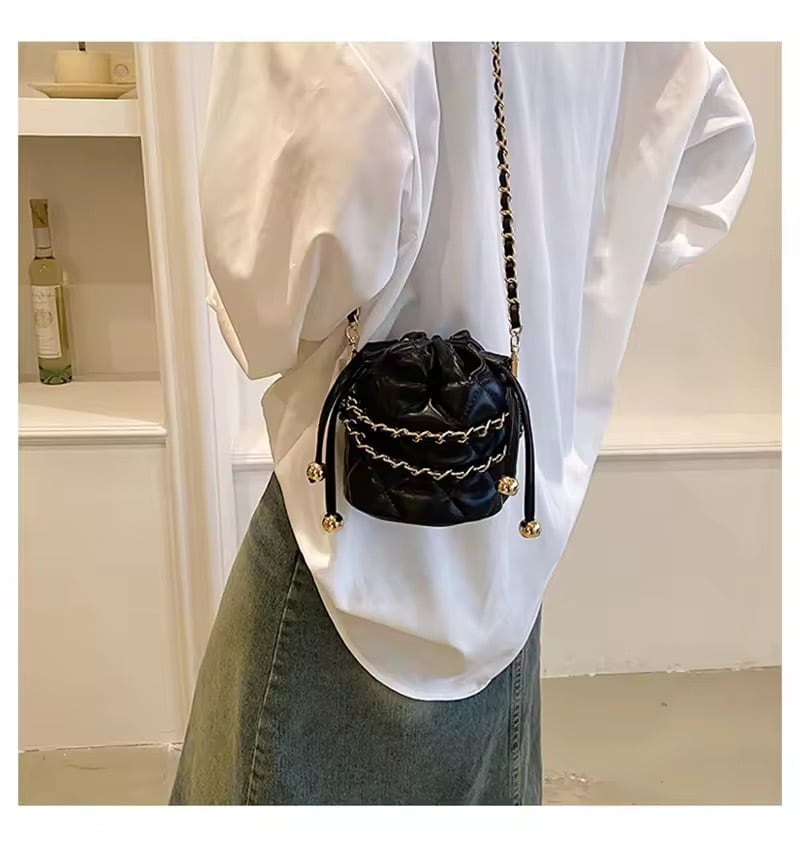 コロンとしたミニサイズが可愛いキルティングチェーンバッグ。
