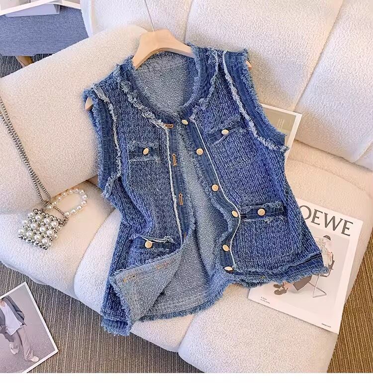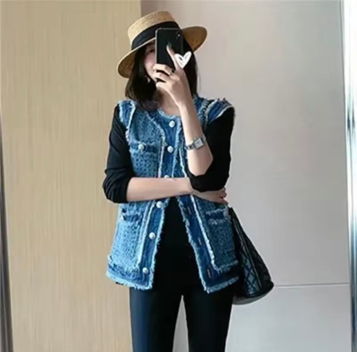 ニットからブラウスやTシャツと、シーズンレスに様々なスタイリングに合わせやすく、ブローチをしても素敵なジレです。