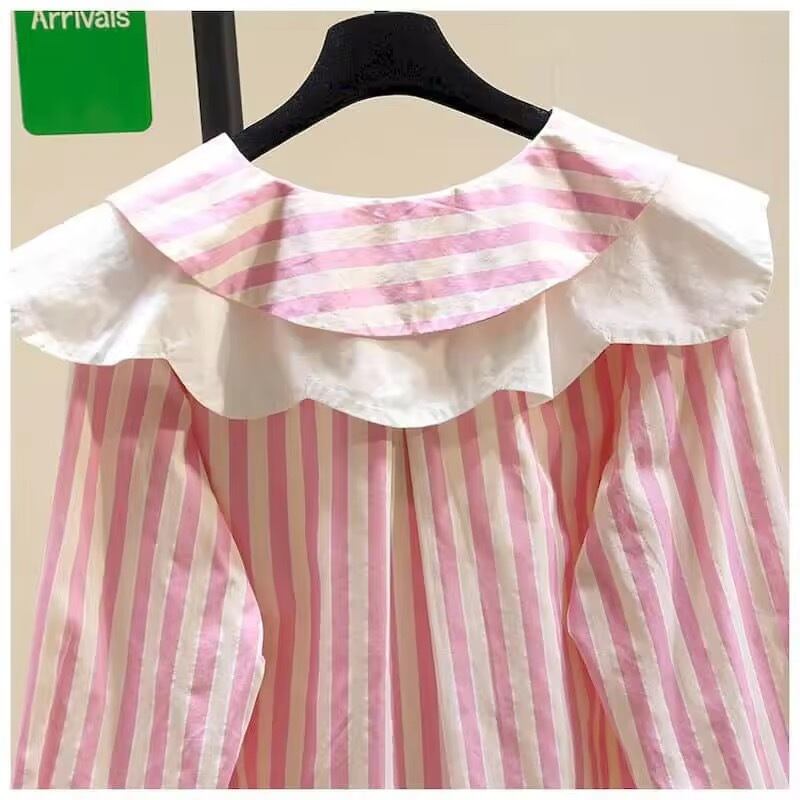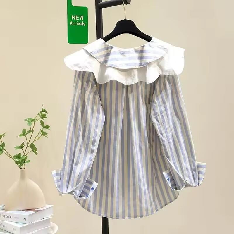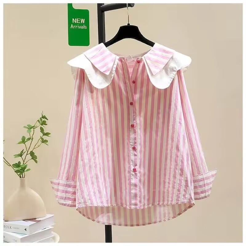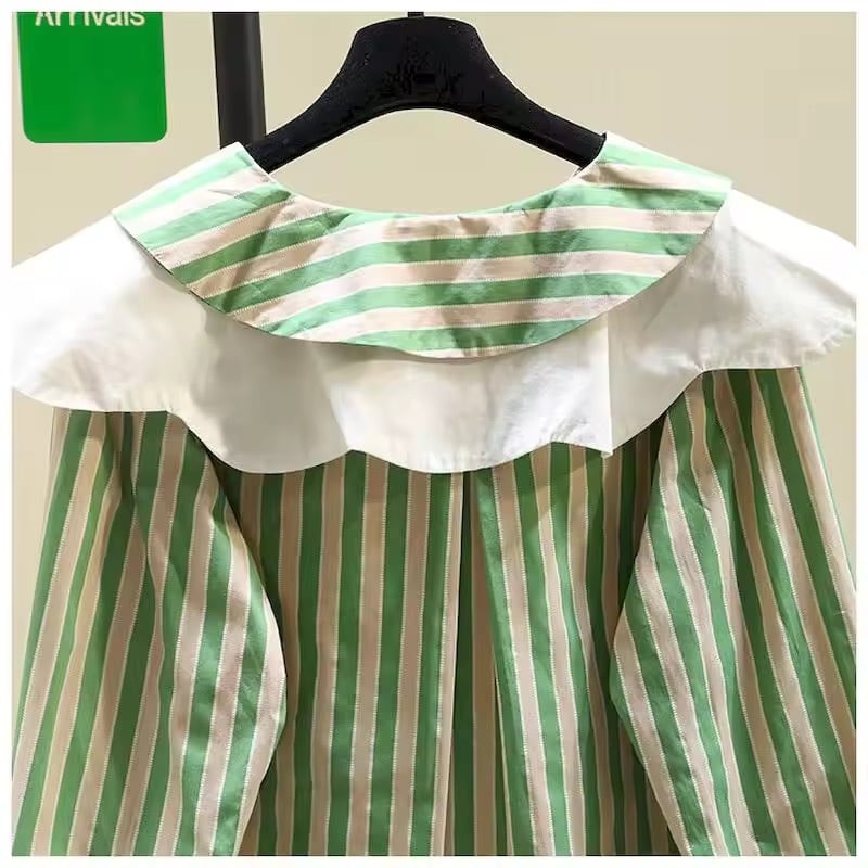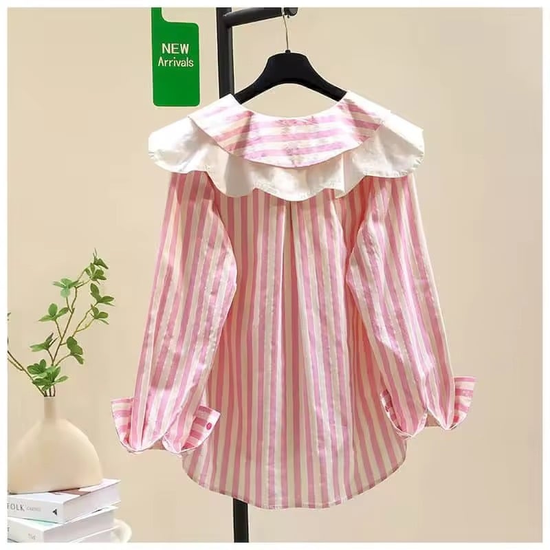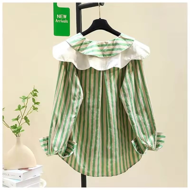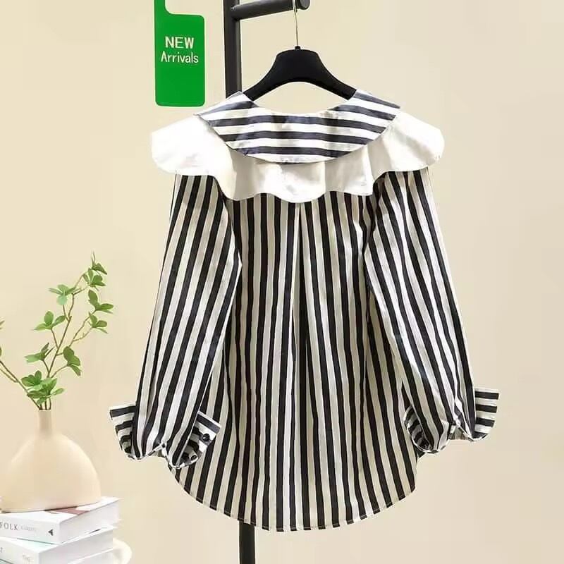 スカラップカラーストライプブラウス(一ヶ月程でお届け)
