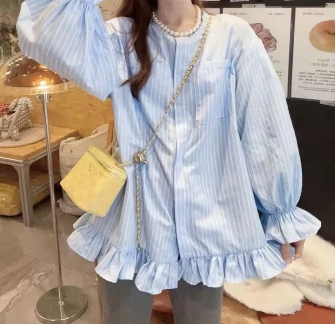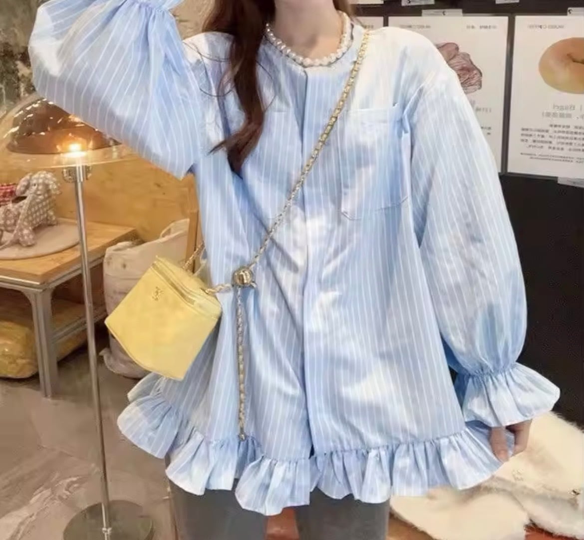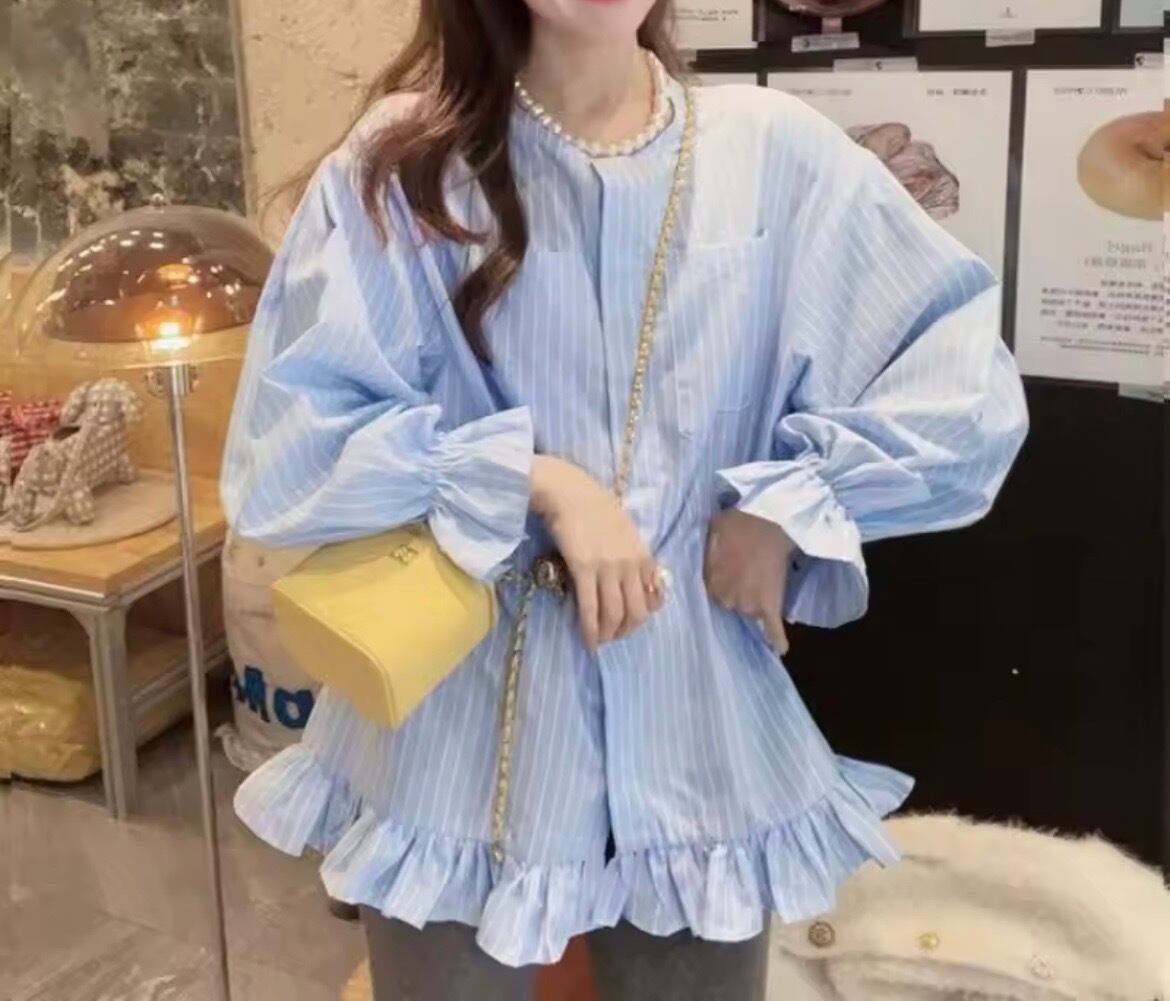 ストライプフリルブラウス(一ヶ月程でお届け)