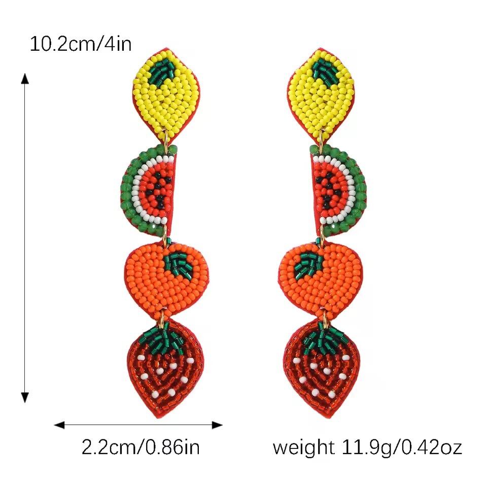 ビーズ刺繍が華やかなフルーツデザインのピアス。