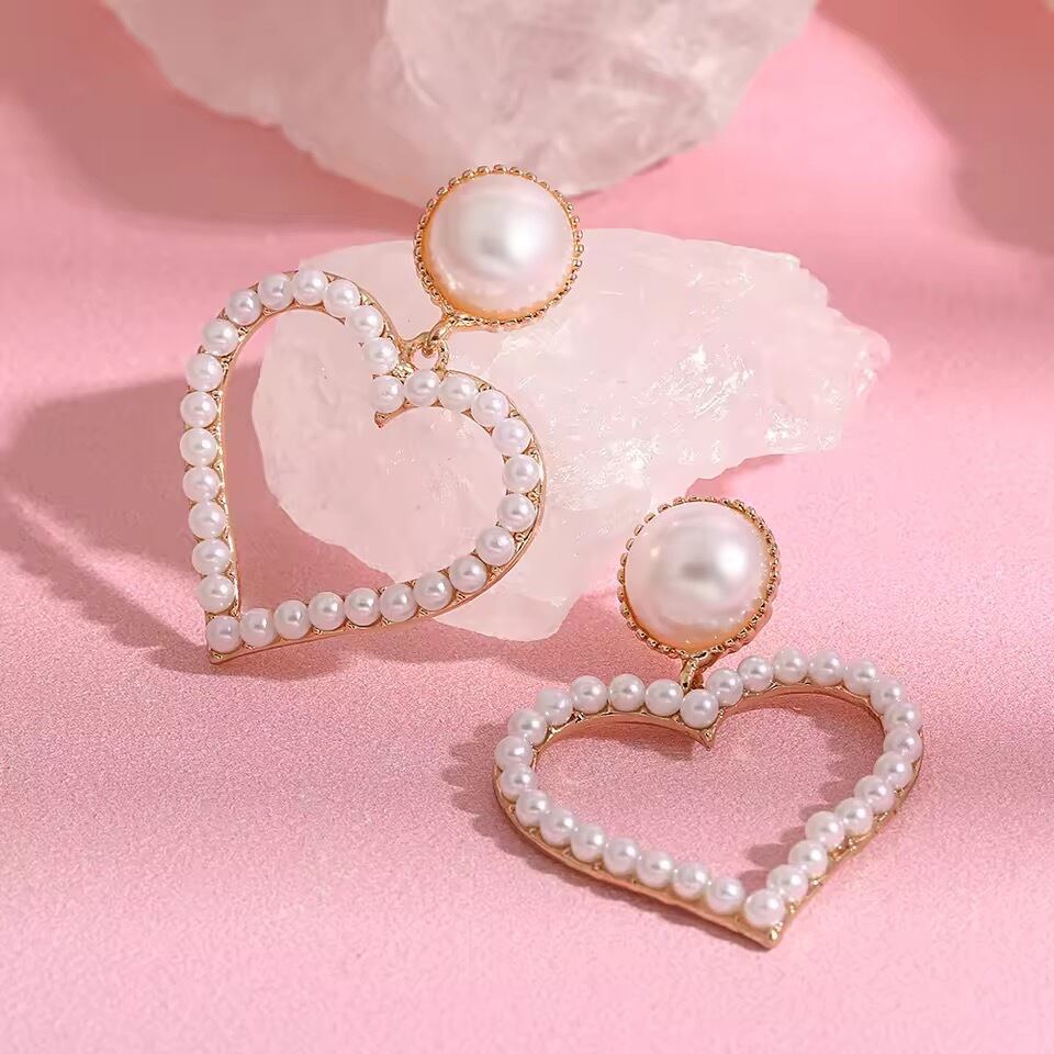 パールハートデザインのピアス。
