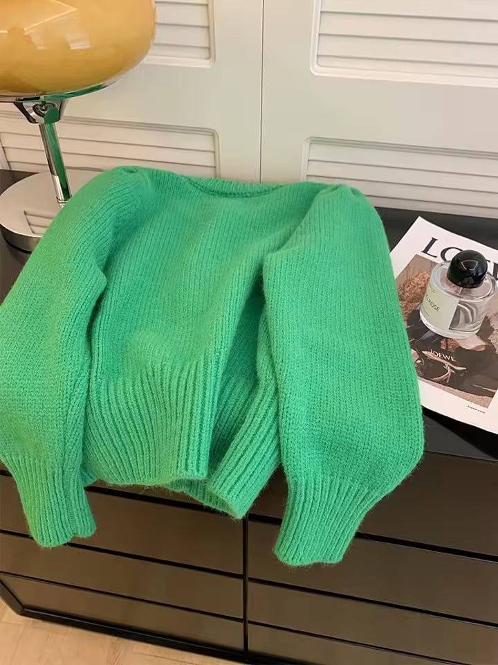 スタイリングにもグリーンが映えてオシャレコーデに仕上がるカーディガンです。