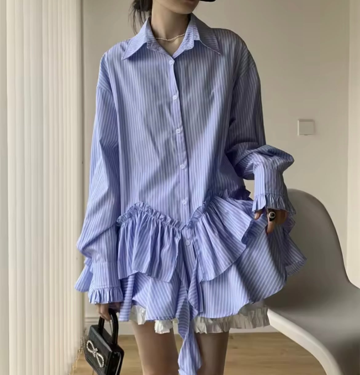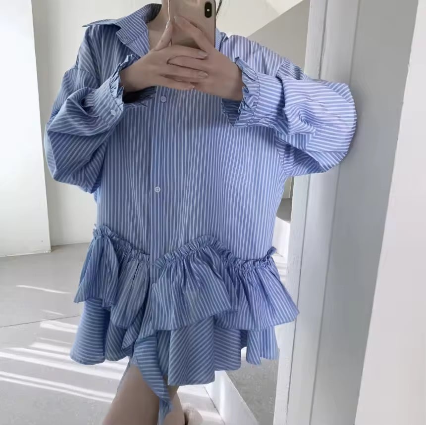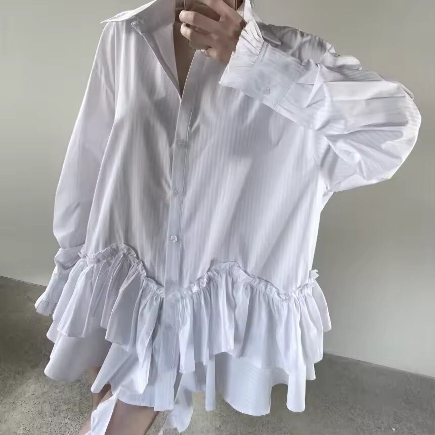 トップス、ワンピースと2wayでお楽しみ頂けて、カーディガンを羽織ると裾フリルが映えるデザインに。