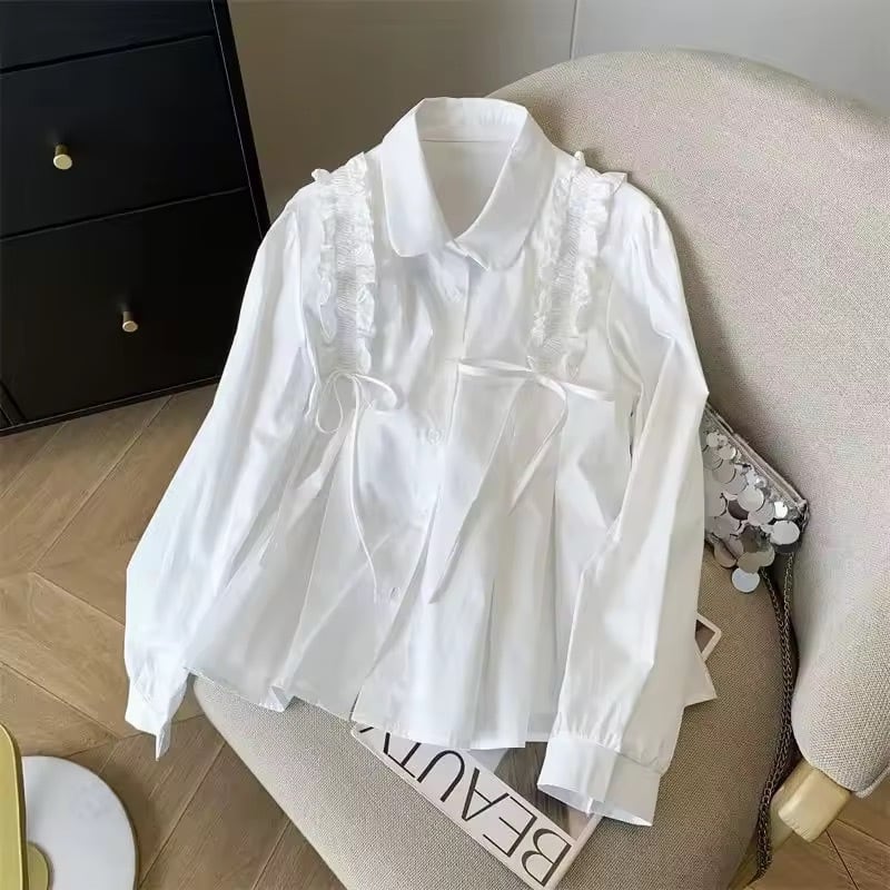 ショルダーフリルリボンブラウス(一ヶ月程でお届け)