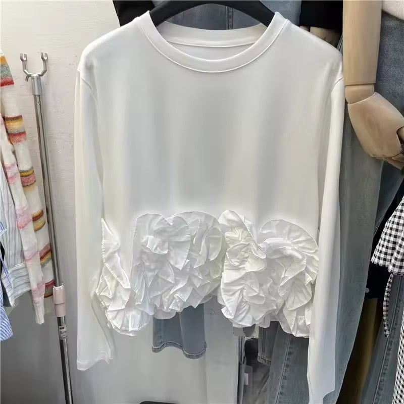 裾フリルが華やかなロングTシャツ。