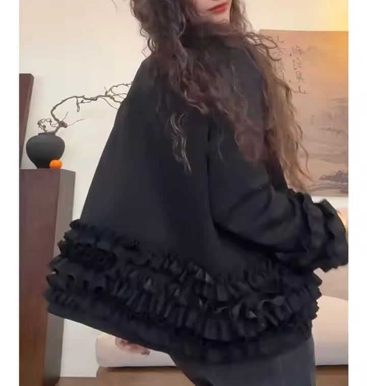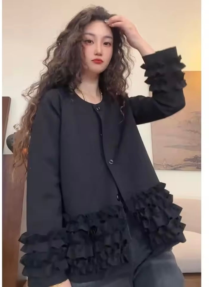 お袖と裾部分がフリルデザインになったジャケットアウター。