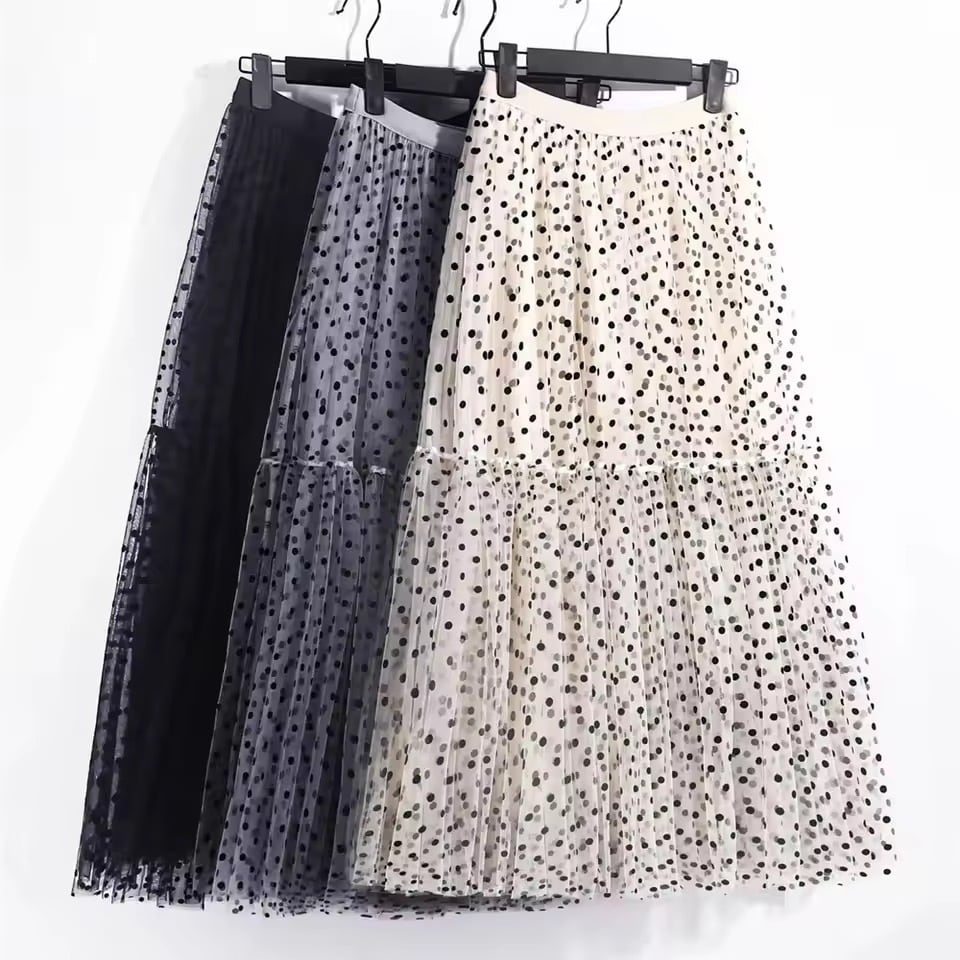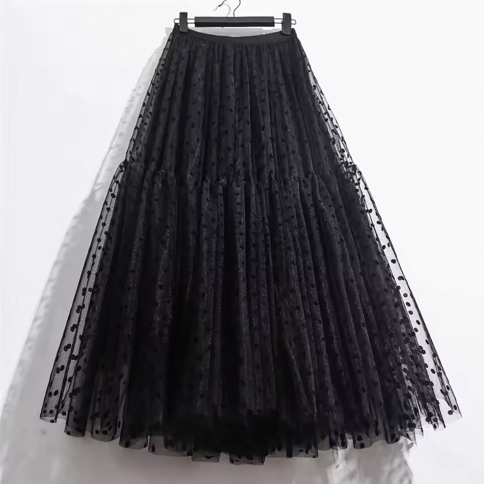 ドットチュールとフレアラインが華やかなチュールスカート。