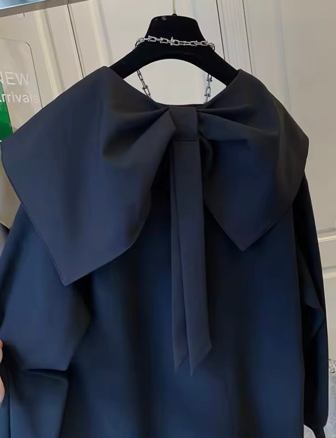 フロント、バックスタイルと共に襟元かスタイリングのアクセントに。