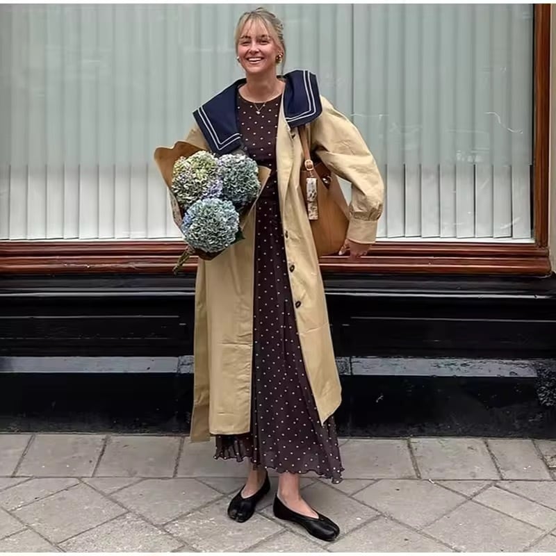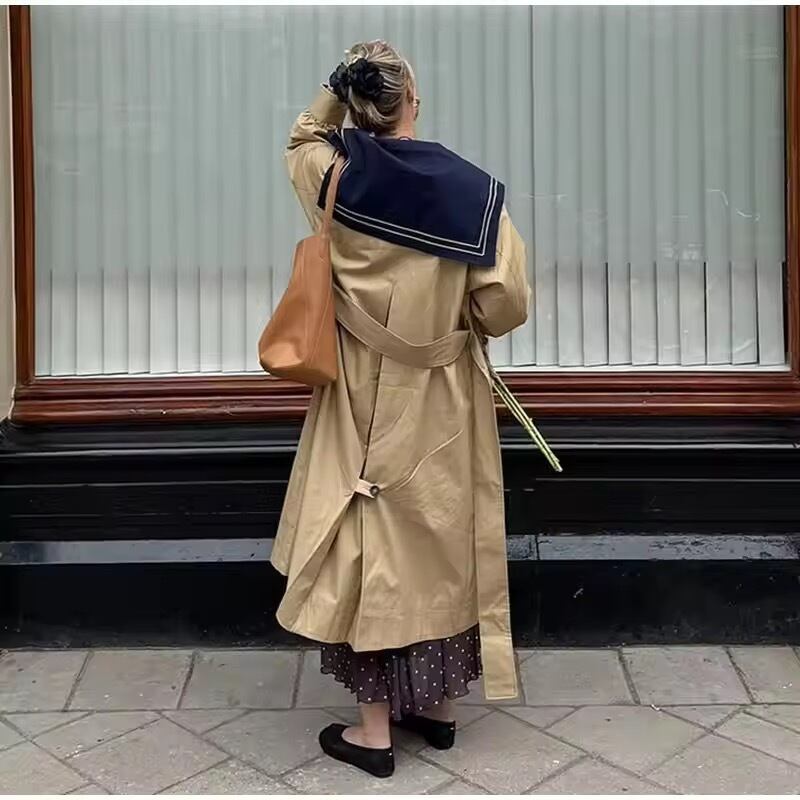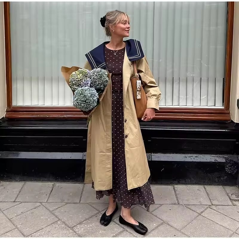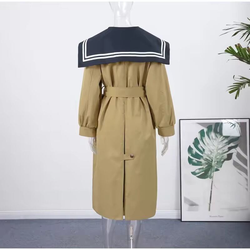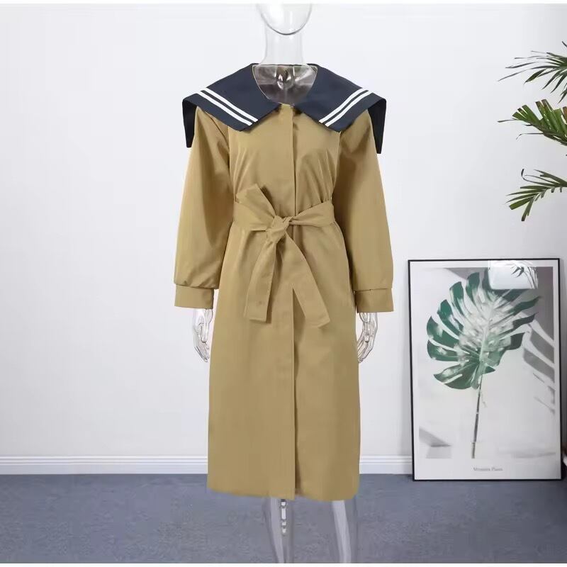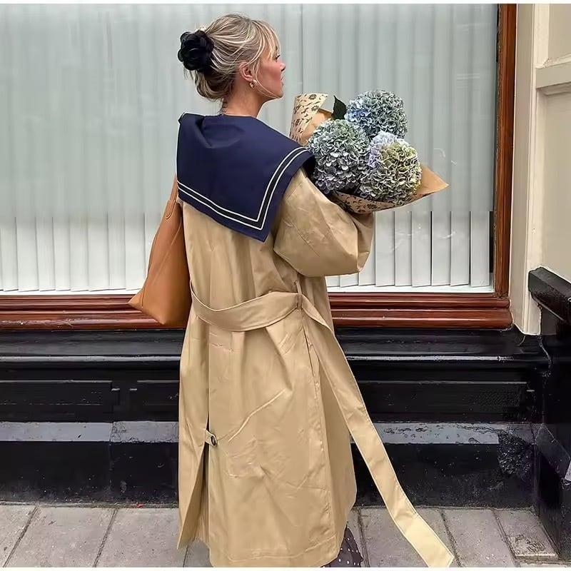 セーラーカラーのトレンチコート。