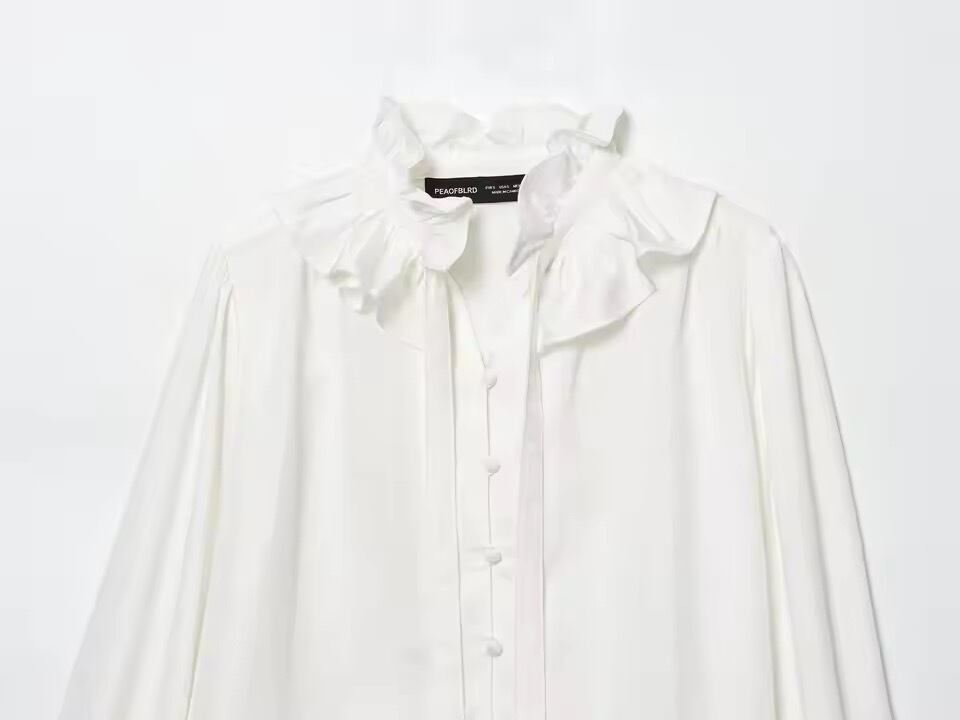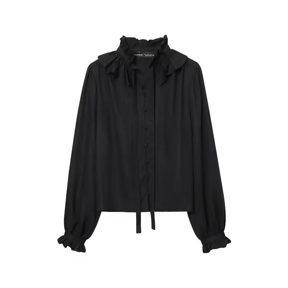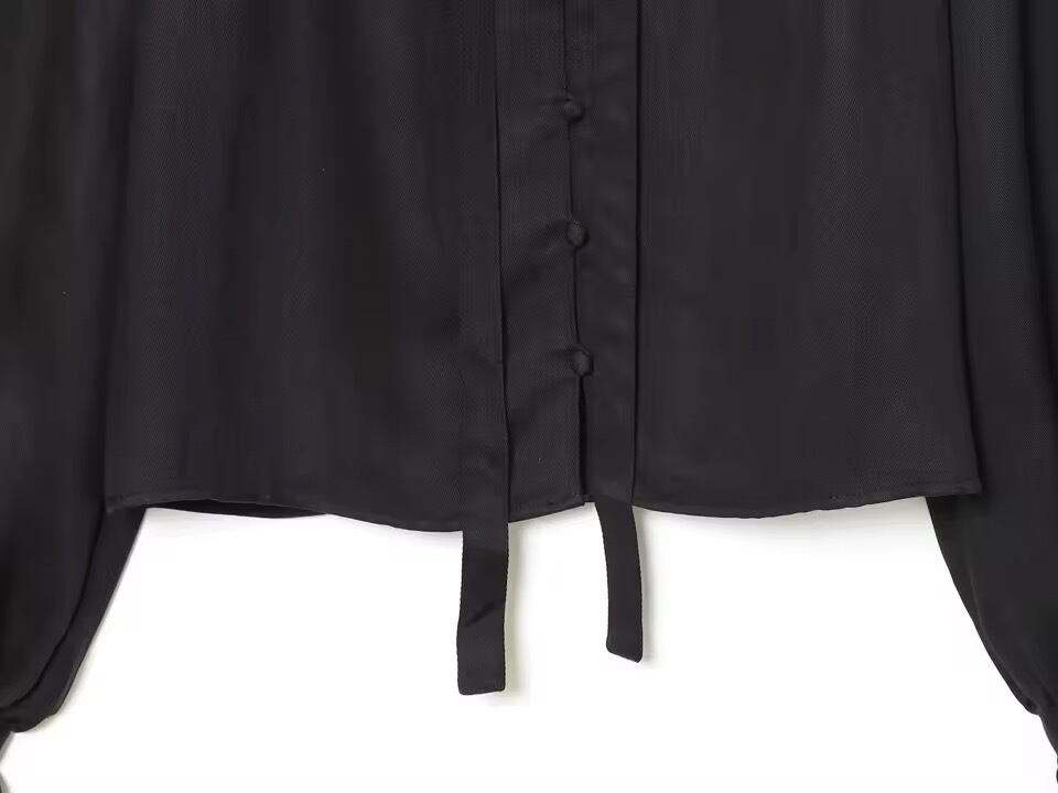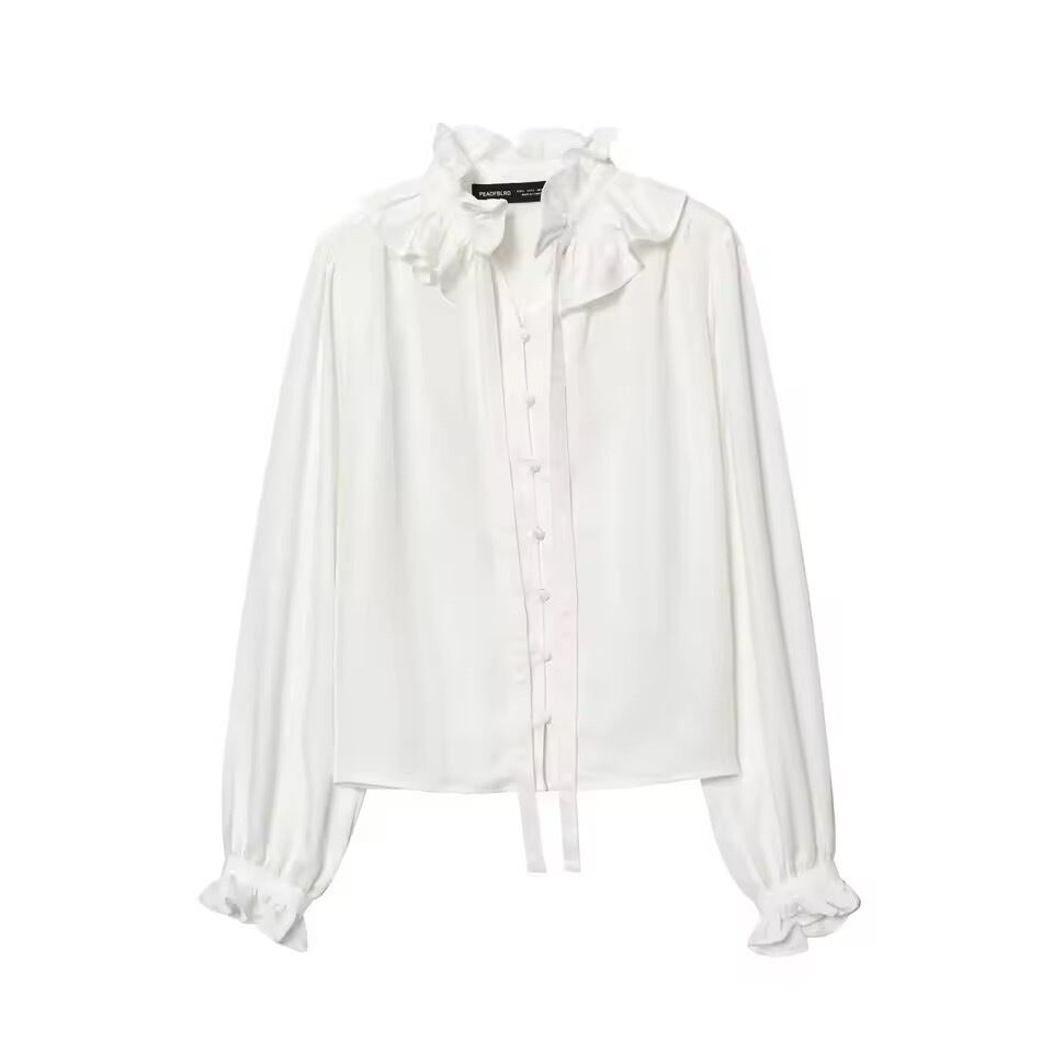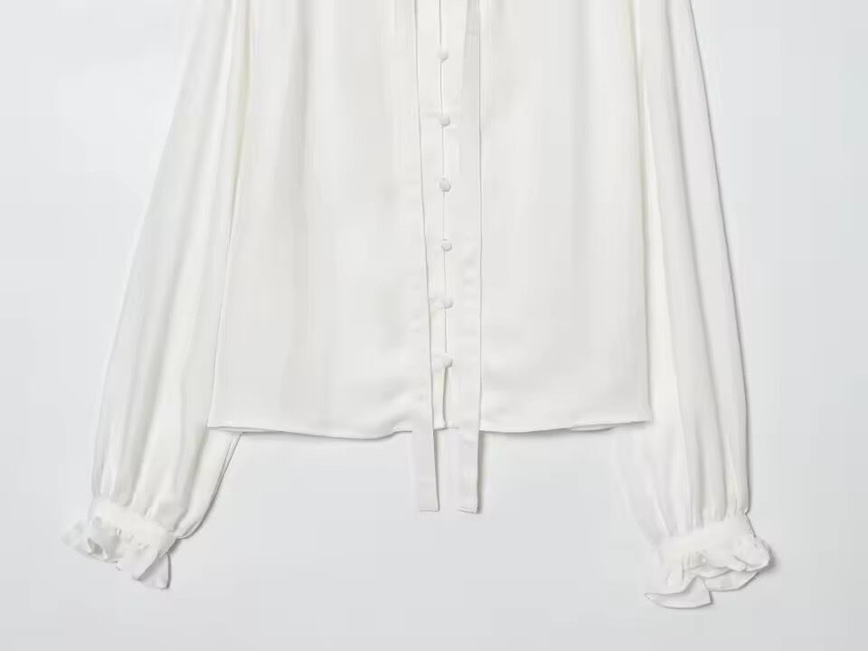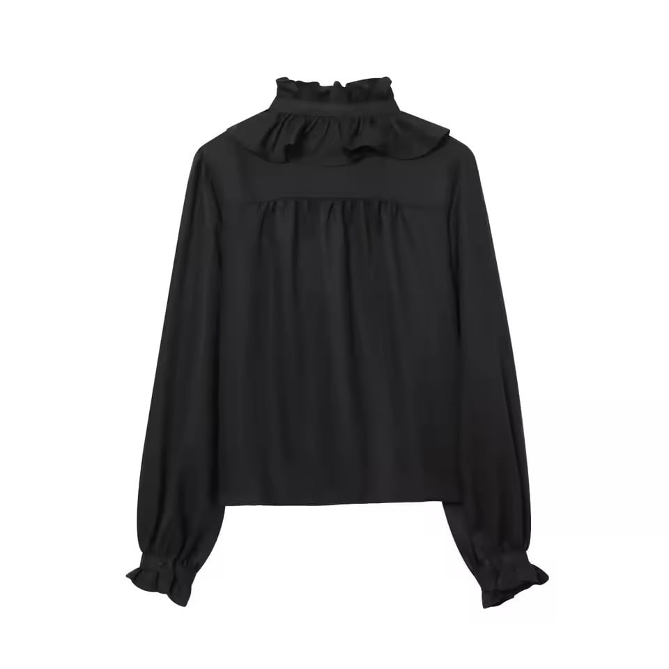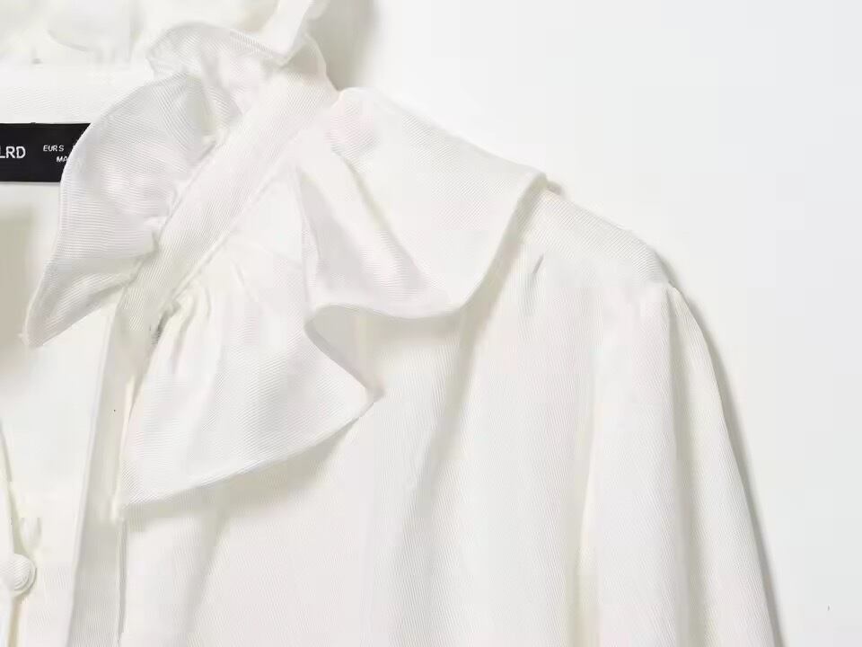お首元がフリルとリボンデザインになったブラウス。